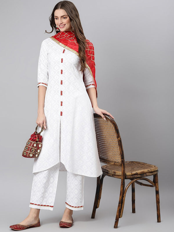 Khushal K Women White Printed Kurta with Palazzos & With Dupatta