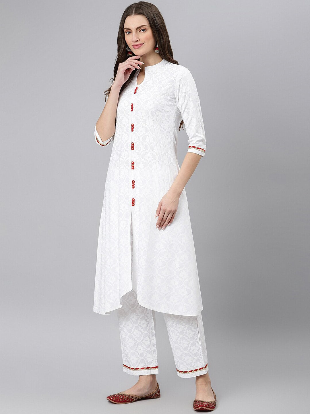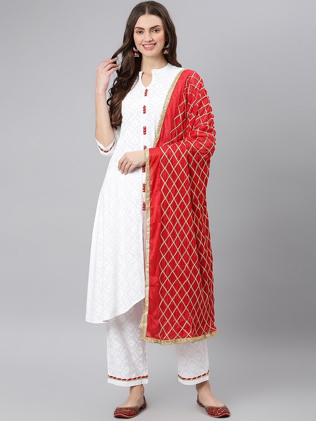 Khushal K Women White Printed Kurta with Palazzos & With Dupatta - S