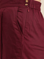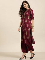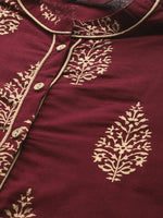 Women Maroon & Golden Pure Cotton Printed Kurta with Palazzos - Vishwa