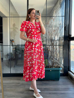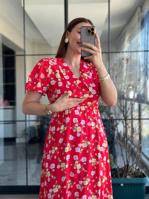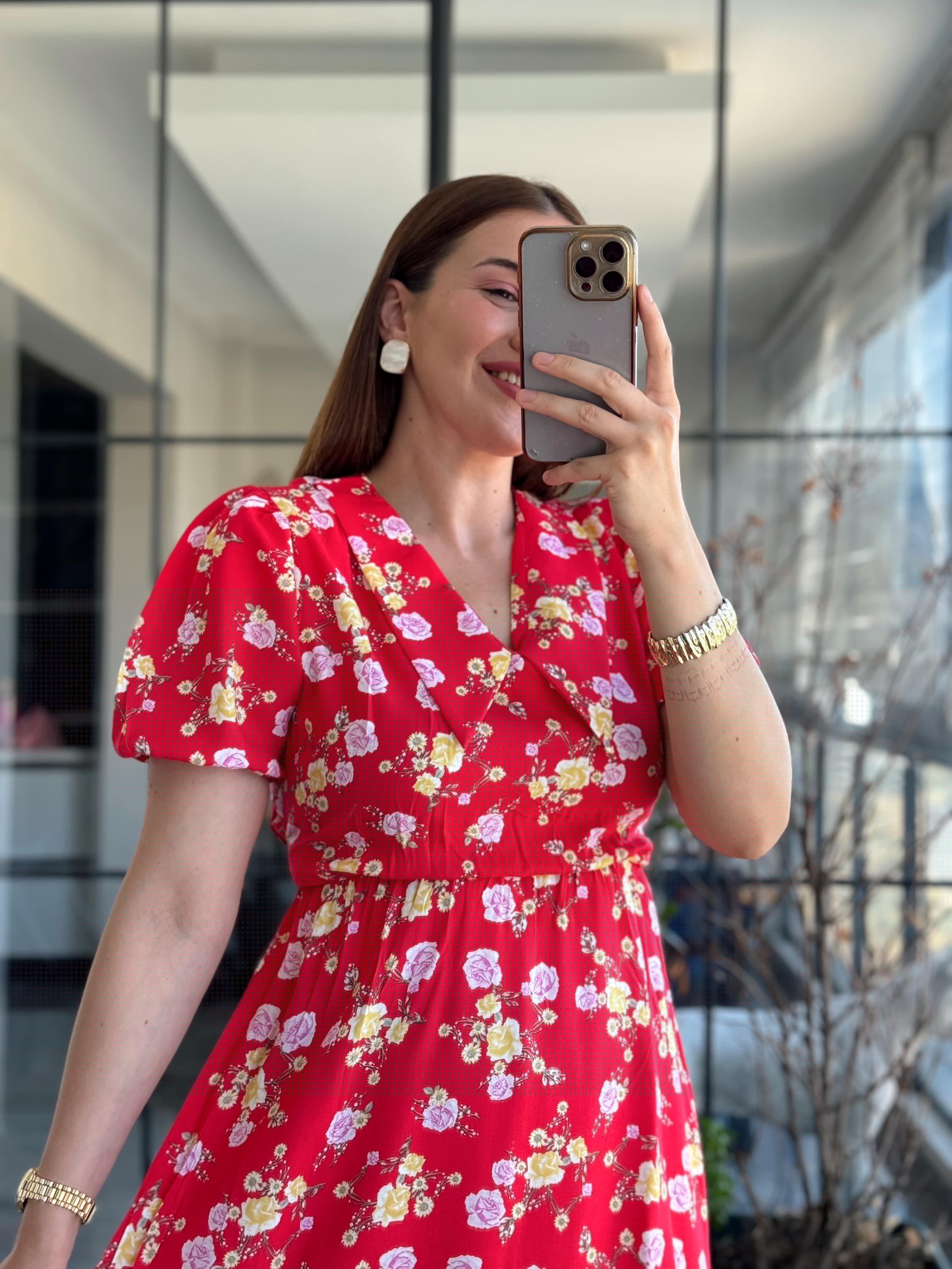 Pimu New Season Baby Collar Viscose Midi Dress - Belted Trend - RedAbout the Product: Style(Anarkali, Flared, Straigth): Flared Top Fabric: Rayon...