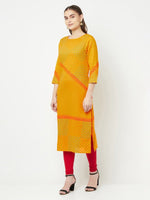 Aniyah Cotton Block Print Mustard Color Straight Kurta
