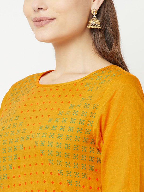 Aniyah Cotton Block Print Mustard Color Straight Kurta - S