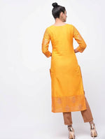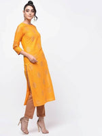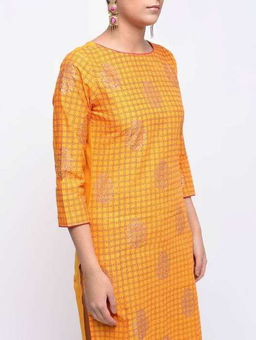 Aniyah Cotton Block Printed Yellow Straight Kurta: