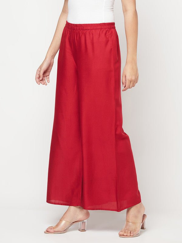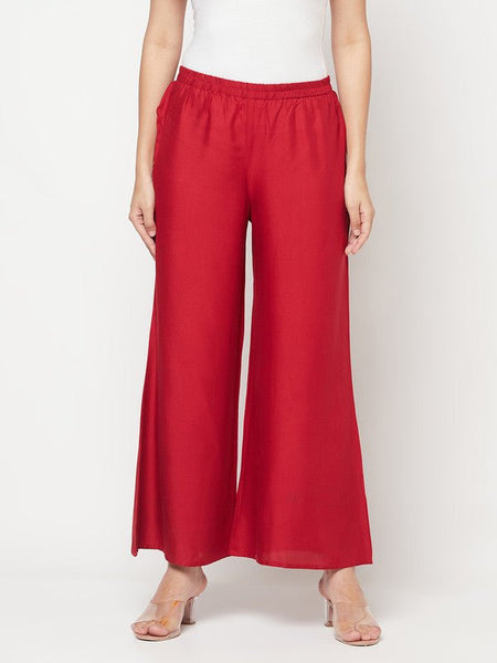 Aniyah Maroon Color Rayon Flared Slip-On Palazzo - S
