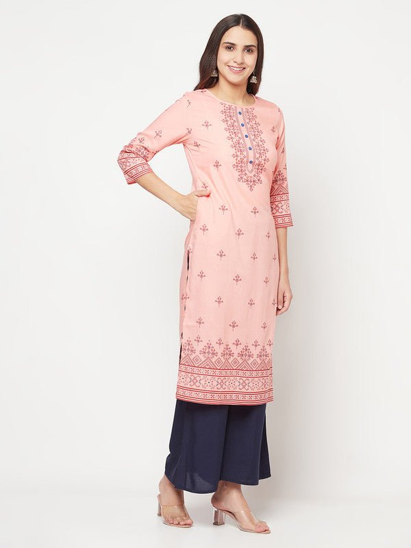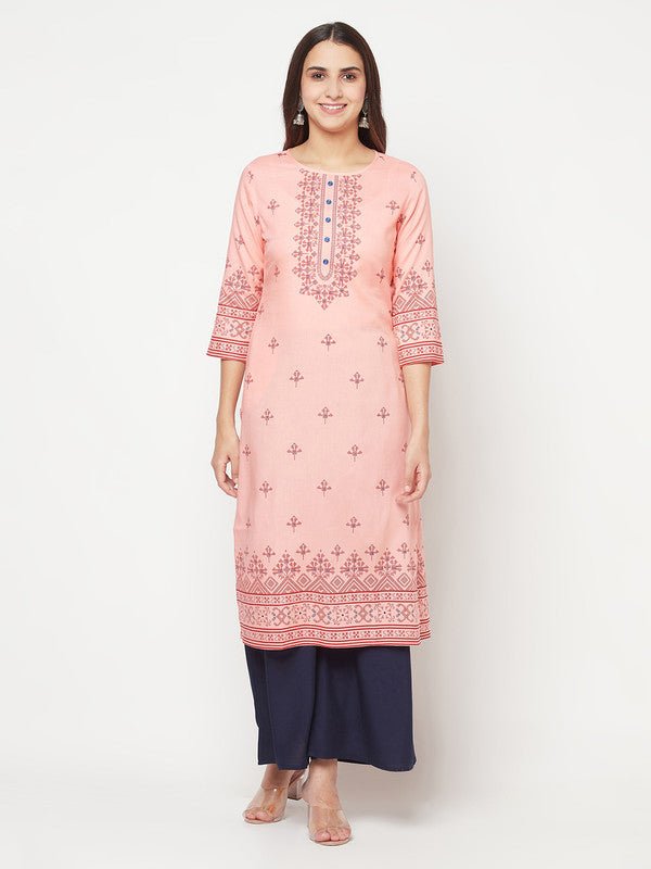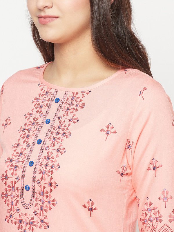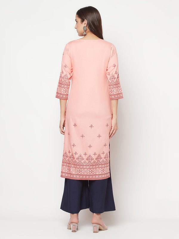 Aniyah Peach Color Rayon Digital Screen Print Straight Kurta - S