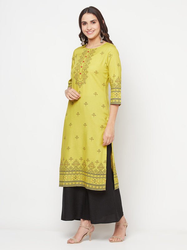 Aniyah Rayon Digital Screen Print Parrot Green Straight Kurta - S