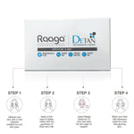 • Wipe the face with wet cotton and clean it with a cleanser. Apply Raaga Professional De-Tan all over the face and leave it for 10-15 minutes. Gently massage with circular movements and then remove the cream with wet cotton.