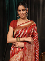 Hiral Fashion Red Banarasi Art Silk Striped Zari Woven Saree