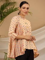 Juniper Women's Peach Tribal Printed Pure Cotton Tunic With Beads Work