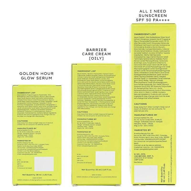 Hyphen By Kriti Sanon Daily Face Care Regime Combo - Oily & Combination Skin, with Glow Serum, Moisturizer & Sunscreen - combo