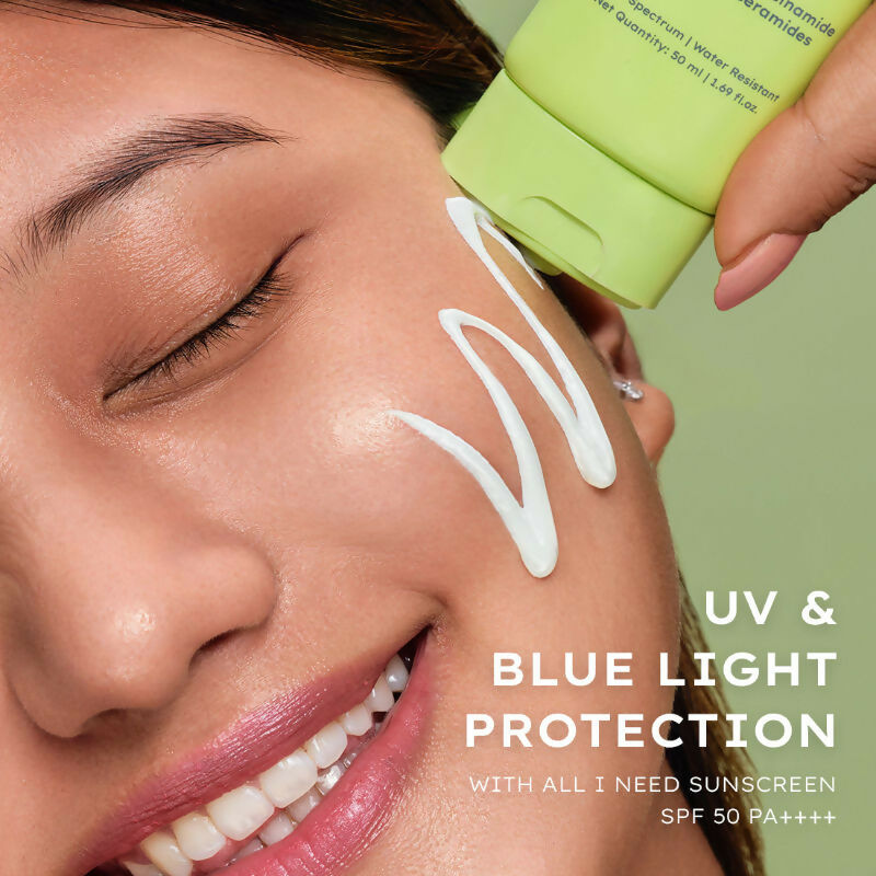 • All I Need Sunscreen:- Kakadu plum extract, Niacinamide , Kojic Acid , Ceramides , Hyaluronic Acid, Vitamin E, Aloe Vera extract