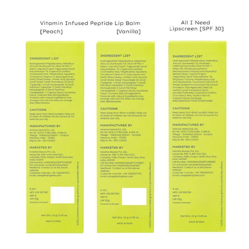 • 1. Hyphen Vitamin Infused Peptide Lip Balm - Vanilla - 10 gm