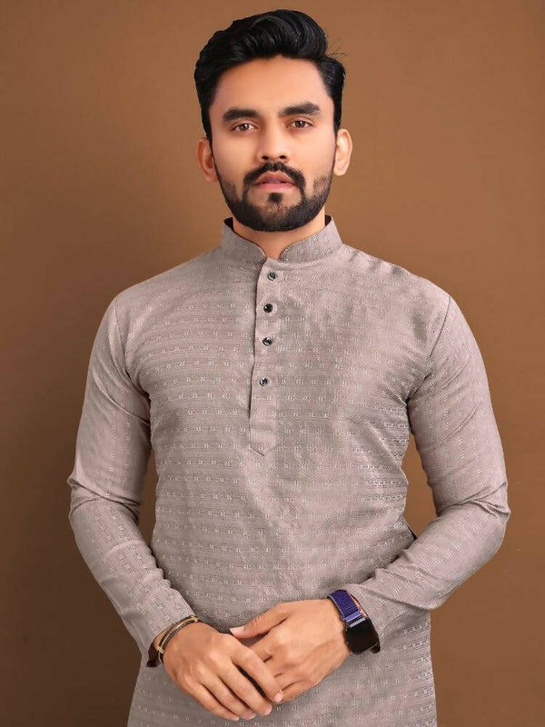 Indian Ethnic Mens Kurta Pajama Party Wear by Infinity Export - Light Brown - Distacart
