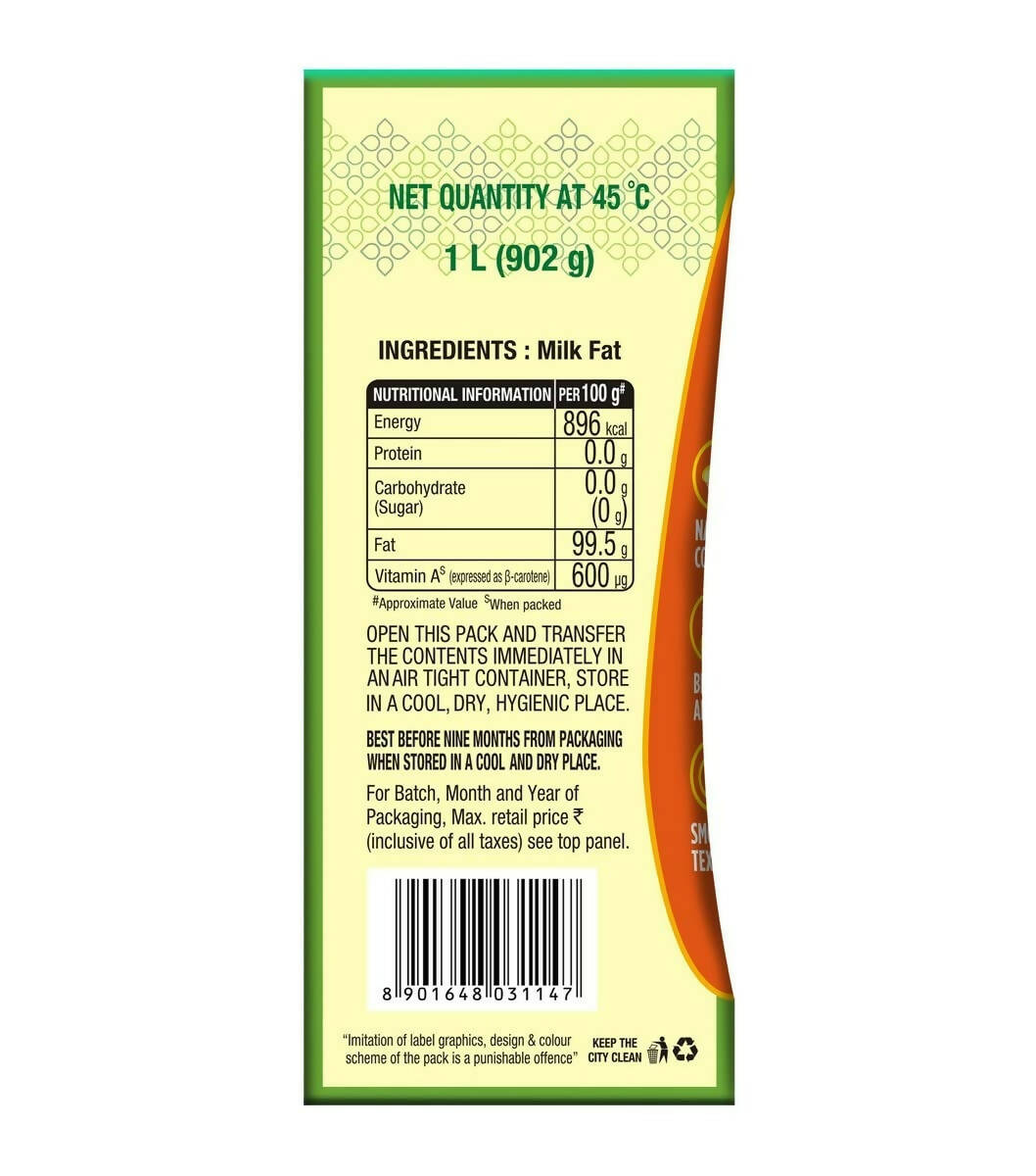 Mother Dairy Cow Ghee Ceka Pack | Good For Overall Health And Strength | Certified Cultured Ghee - 1 L