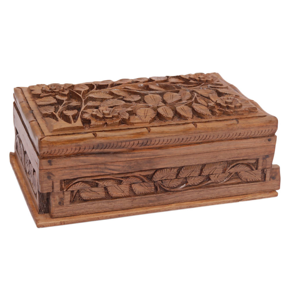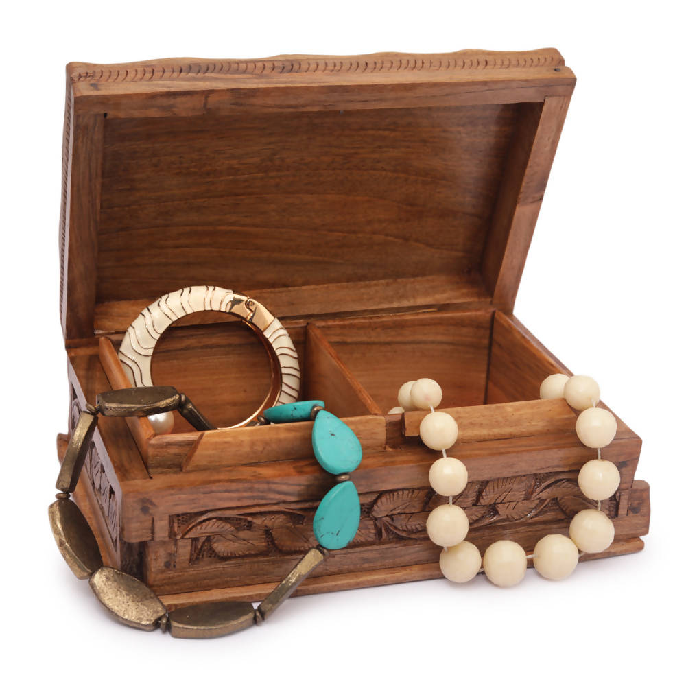 Nizalia Carved Chinar Leaf Handmade Walnut Wood Jewellery Box - Limited Time Offer