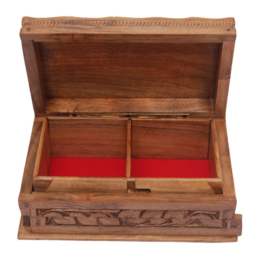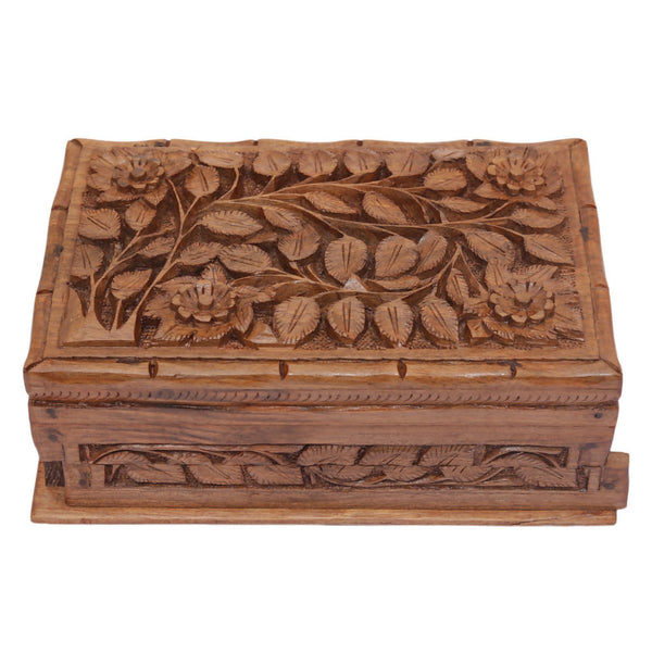 Nizalia Carved Chinar Leaf Handmade Walnut Wood Jewellery Box