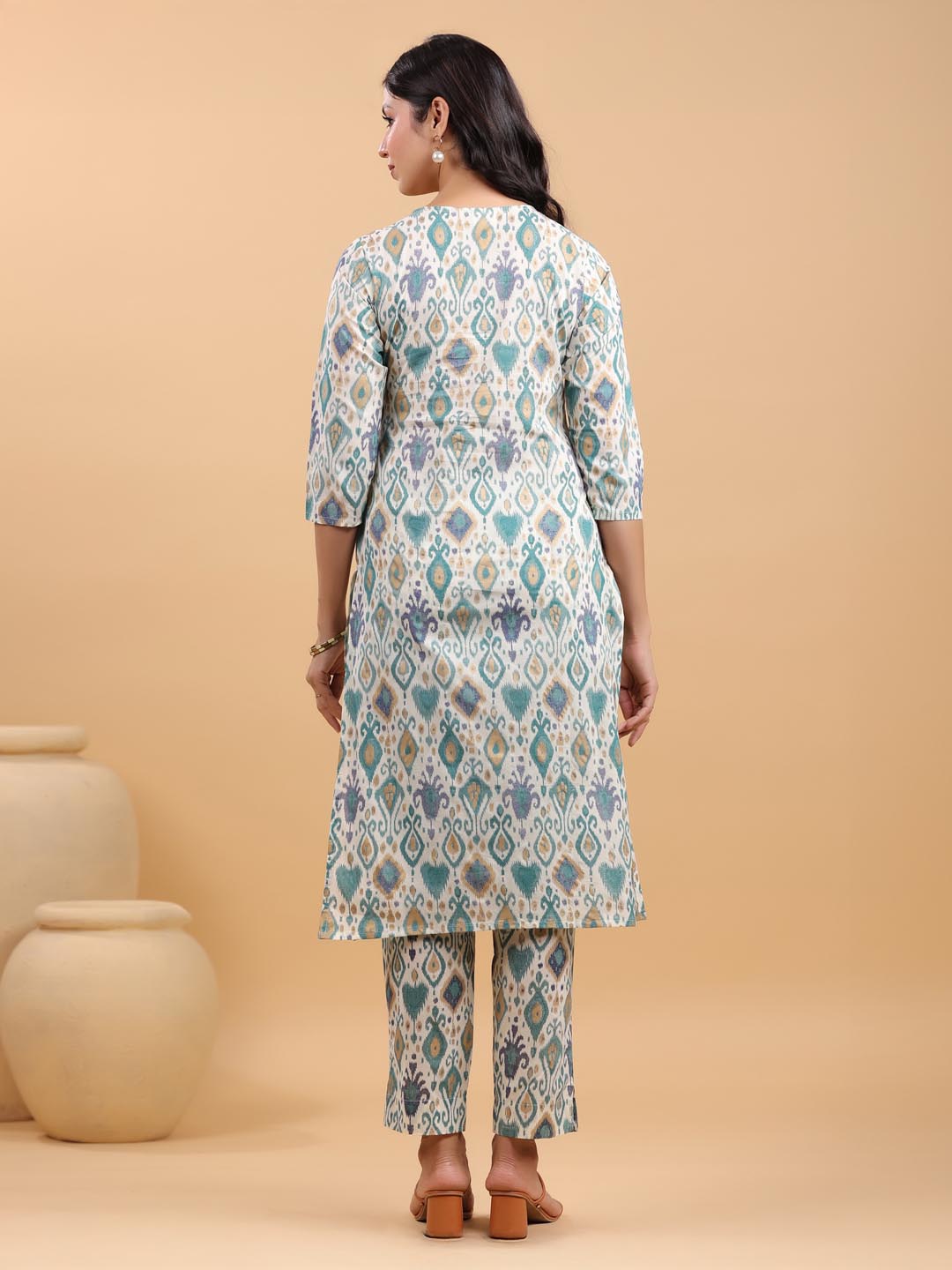 Janasya Light Cotton Ikkat Straight Kurta Set