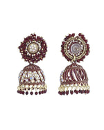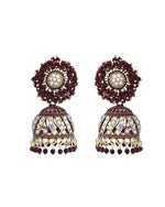 VOJ Marron Beads And Stone Studded Jhumka EarringsThese Maroon Beads and Stone Studded Jhumka Earrings offer a perfect blend of traditional and con...