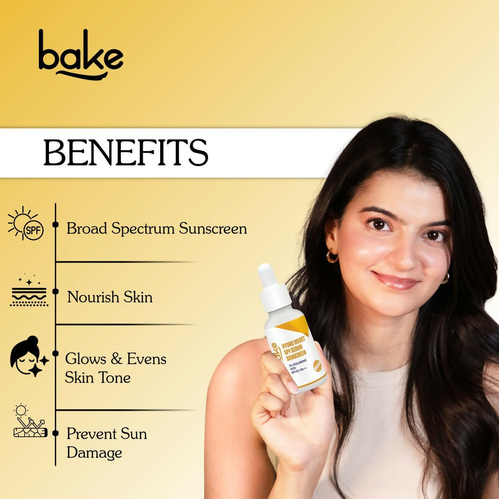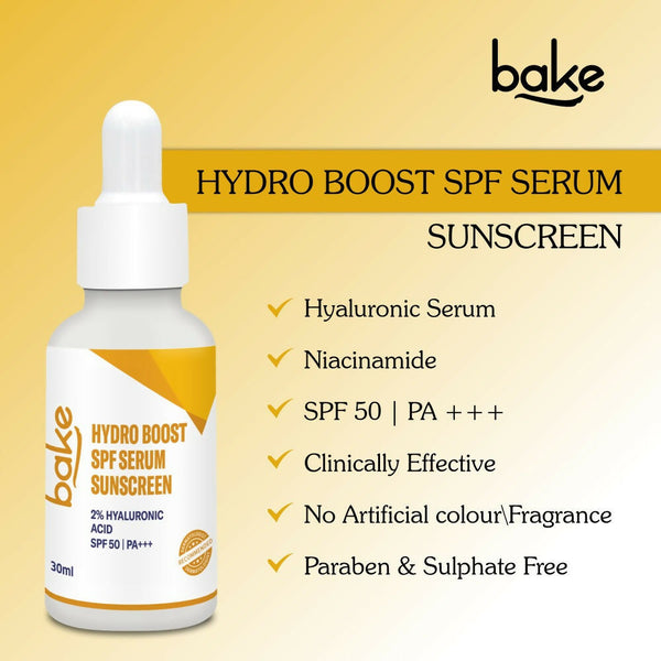 Bake 2% Hyaluronic Acid Hydro Boost Sunscreen Serum Spf 50 Pa+++About the Product:BAKE 2% Hyaluronic Acid Face Serum Sunscreen SPF 50 PA+++ is scie...