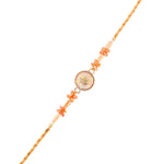 • A beautiful thread rakhi adorned with coloured gems and beads, which will strengthen the lovely brother-sister bond. Perfectly comfortable and good for all-day wear.