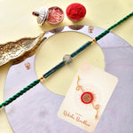 • A beautiful thread rakhi adorned with coloured gems and green beads, which will strengthen the lovely brother-sister bond. Perfectly comfortable and good for all-day wear.