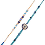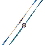 • Evil eye charms beaded thread rakhis for men. Each of the 2 rakhis features light embellishments and a single charm. Designed to be comfortable and stylish.