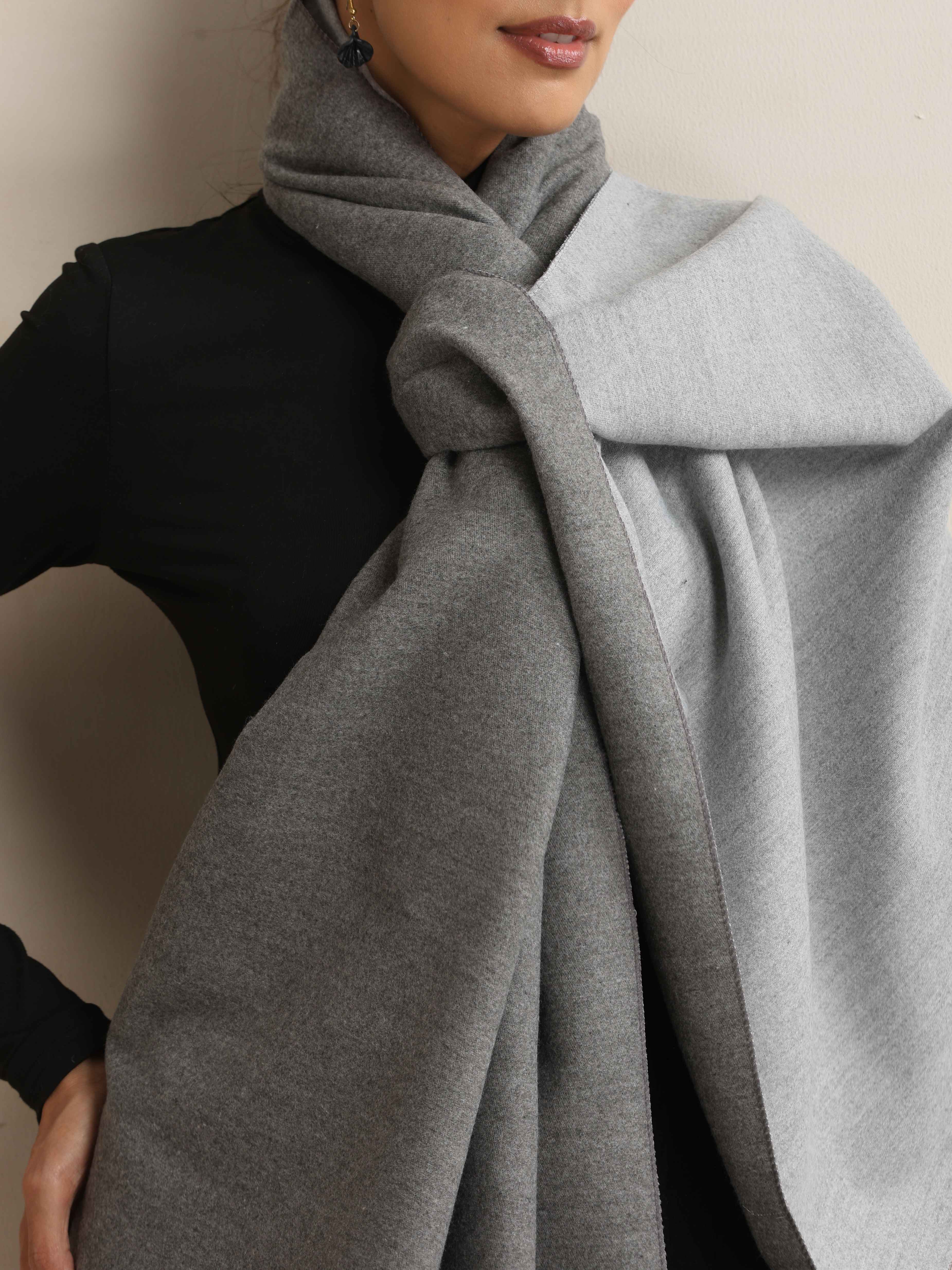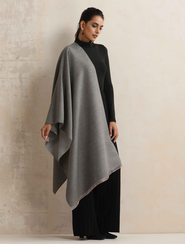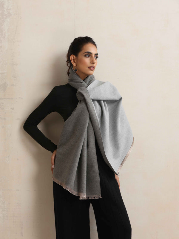 trueBrowns Grey Reversible Woollen Stole - Freesize