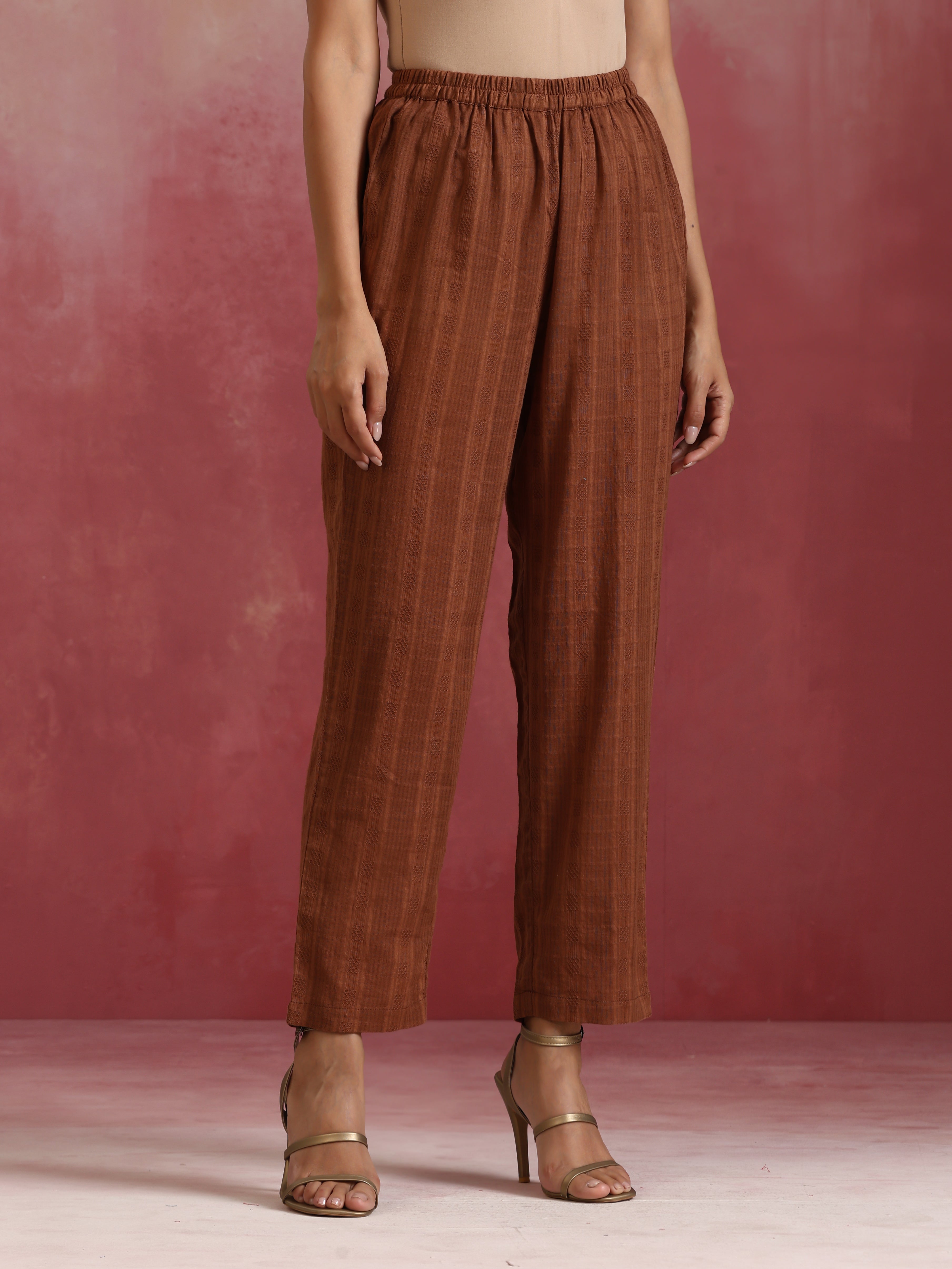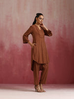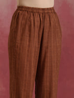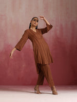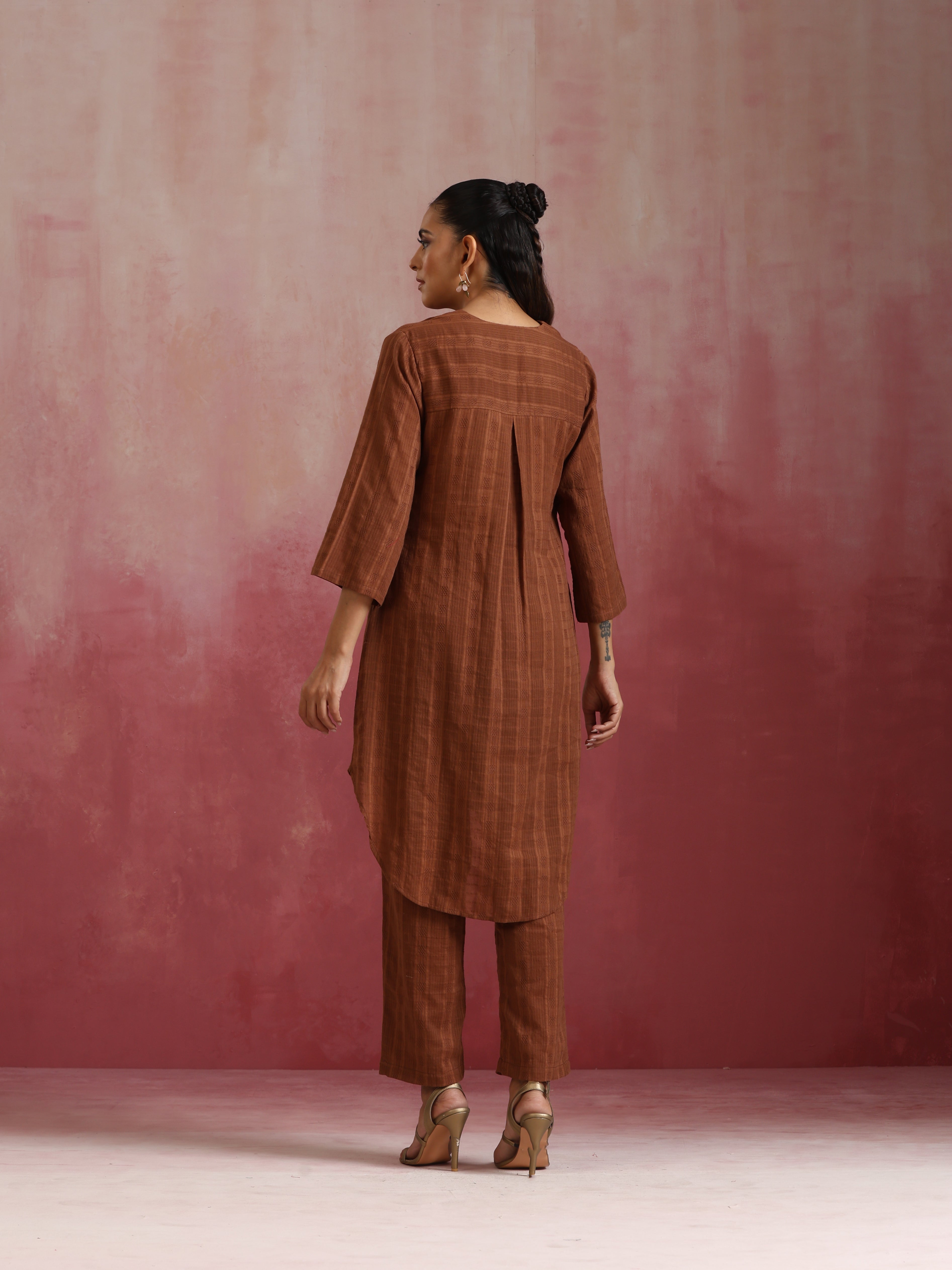 trueBrowns Brown Cotton Dobby Kurta Co-ord set - XS
