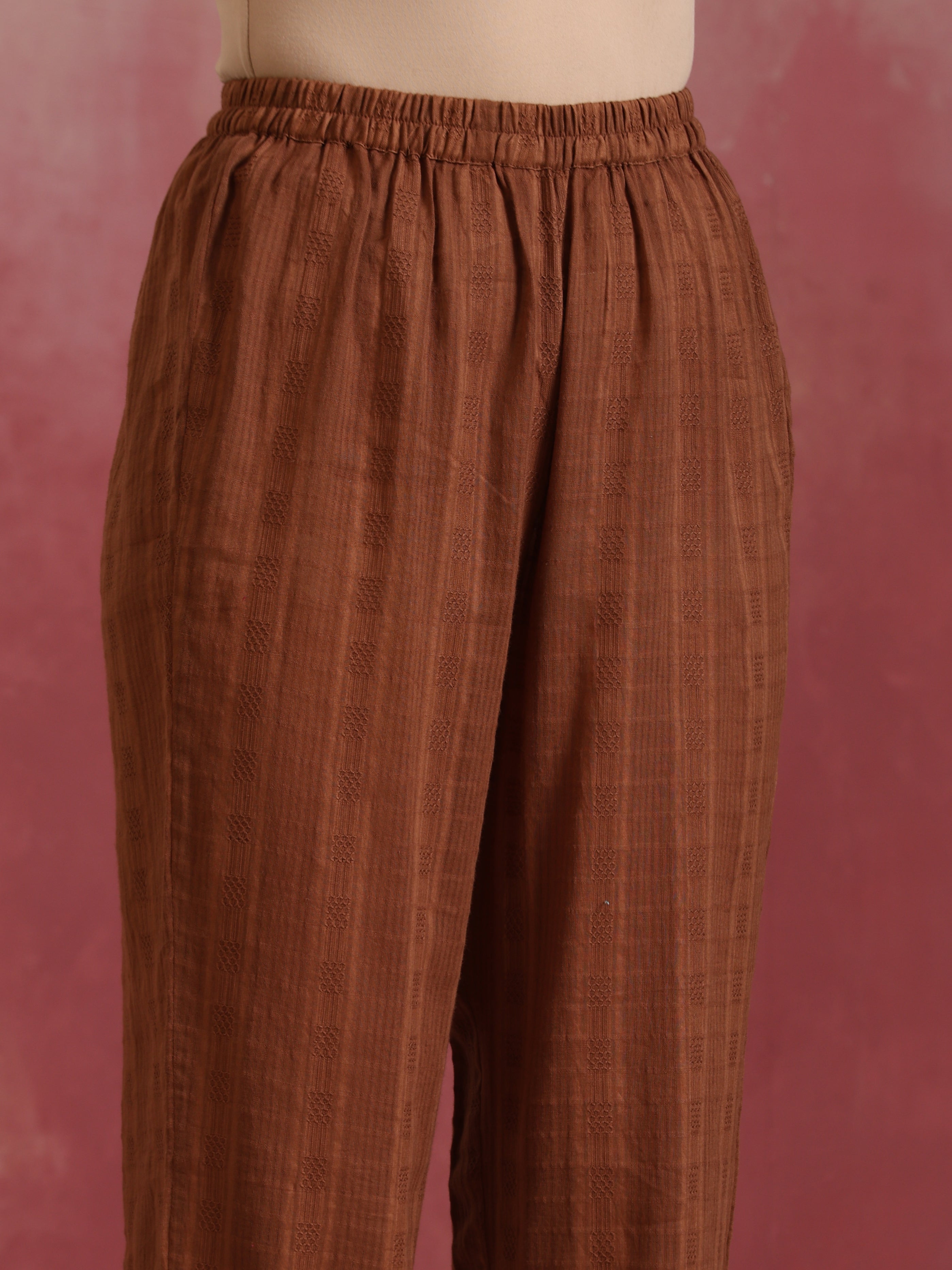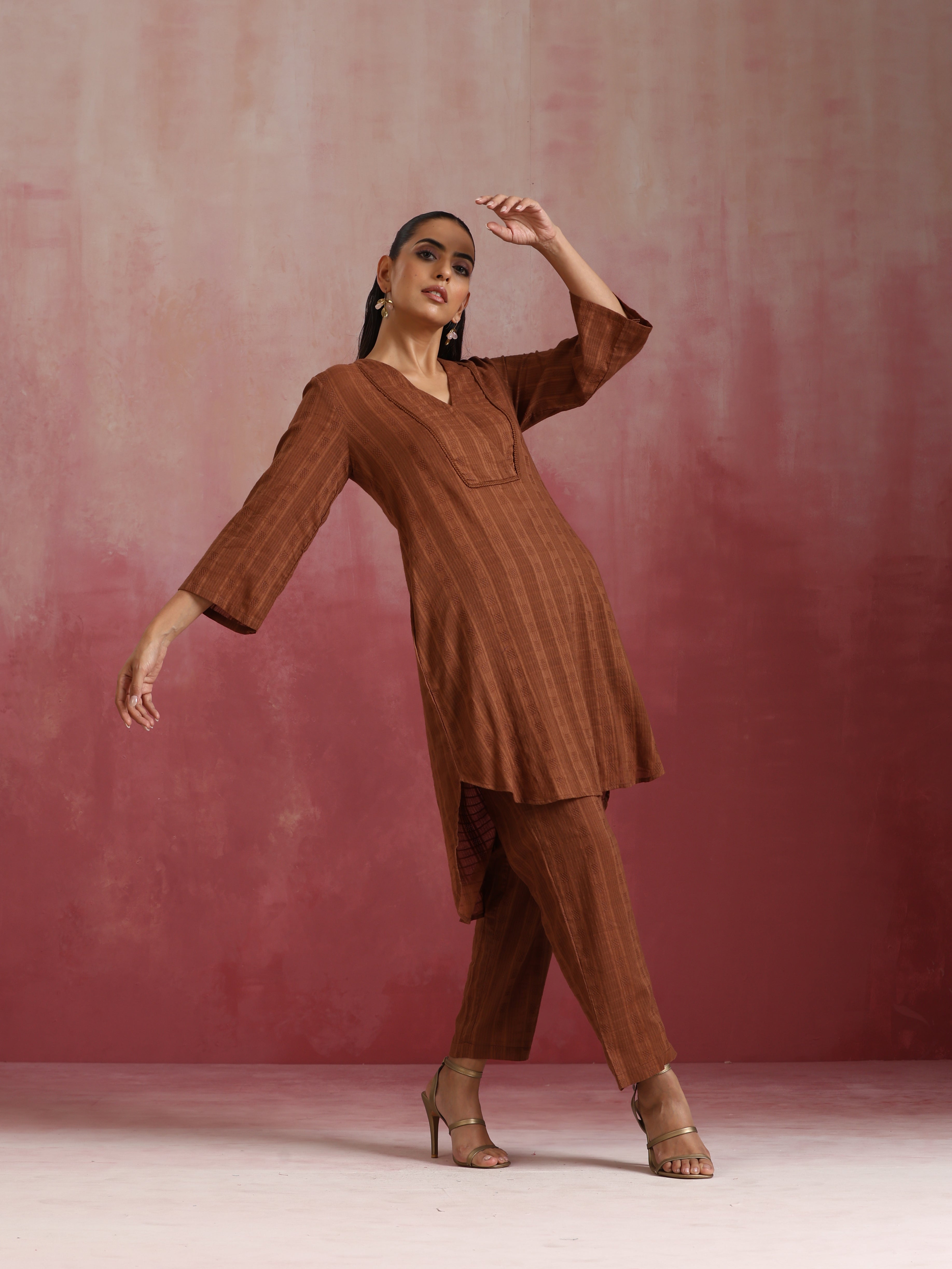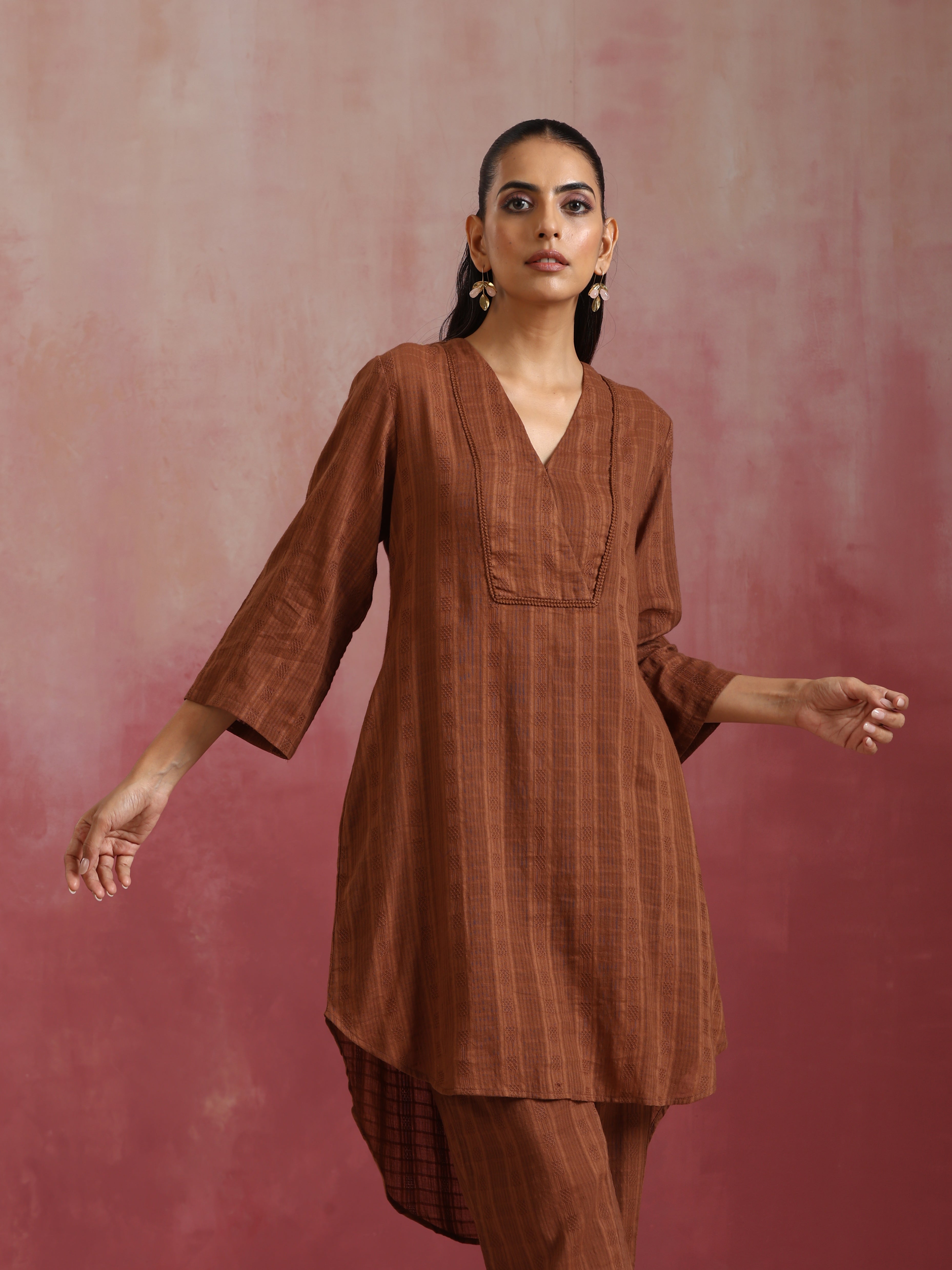 trueBrowns Brown Cotton Dobby Kurta Co-ord set