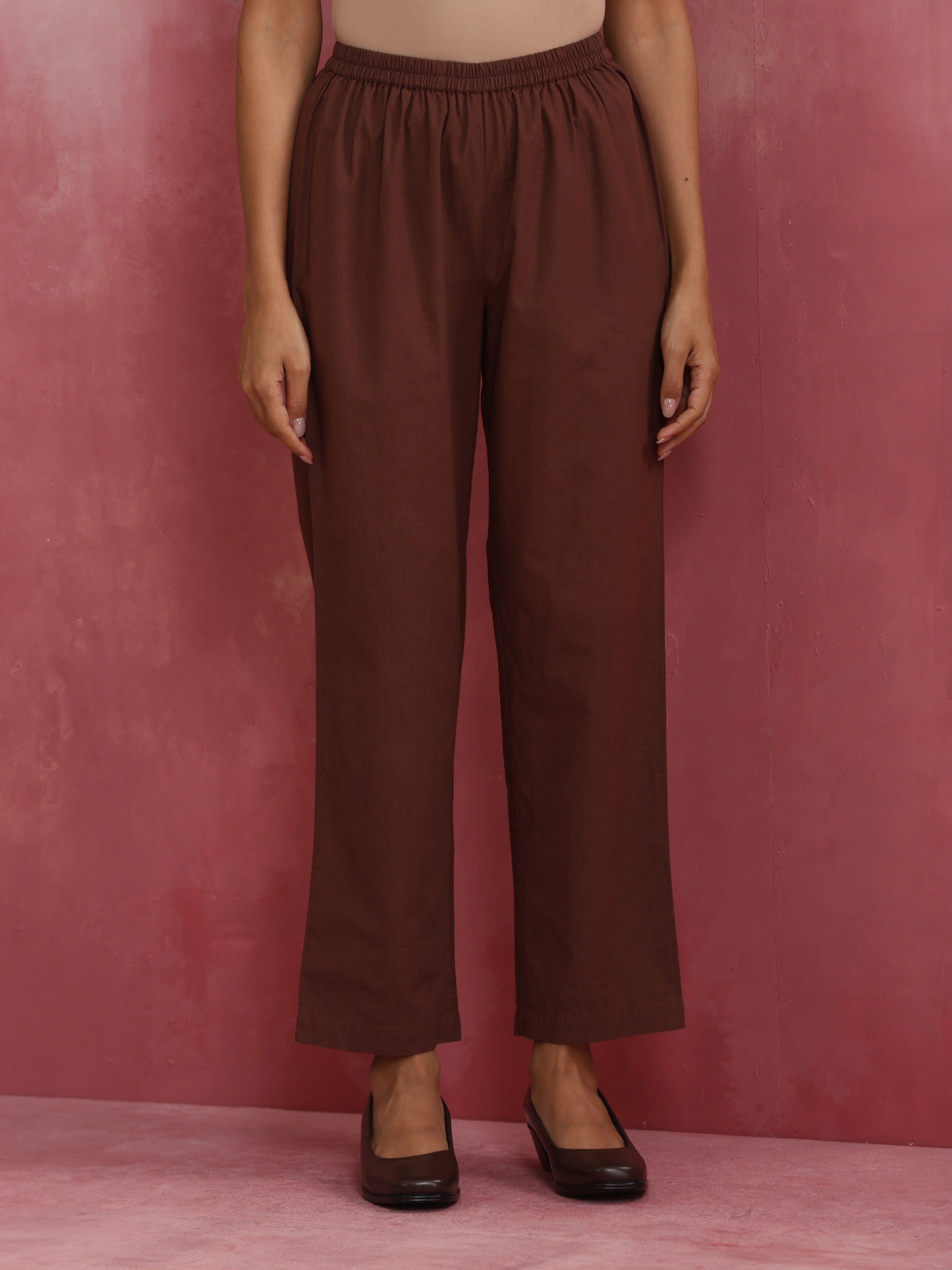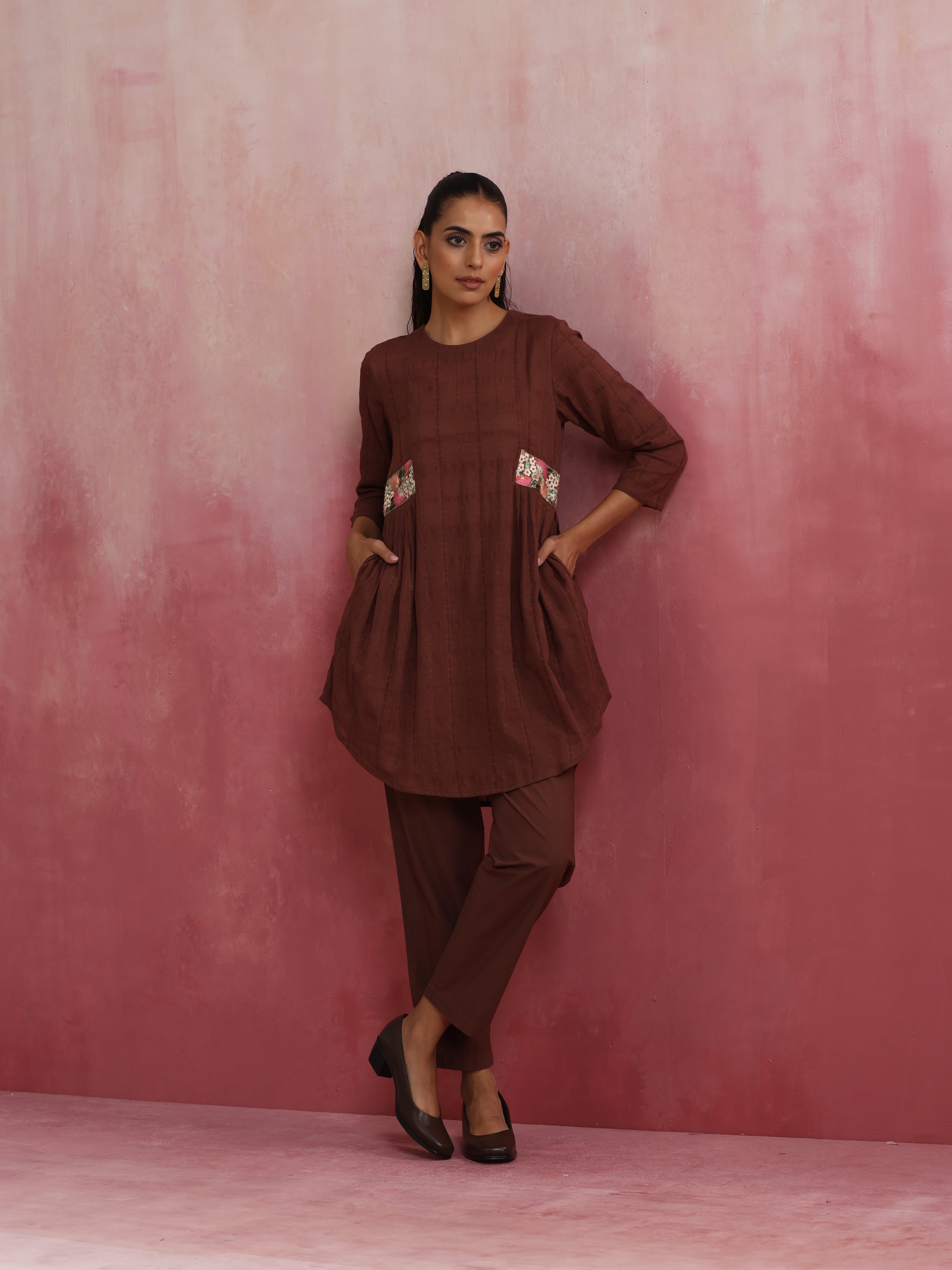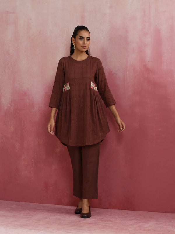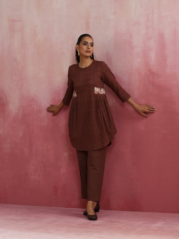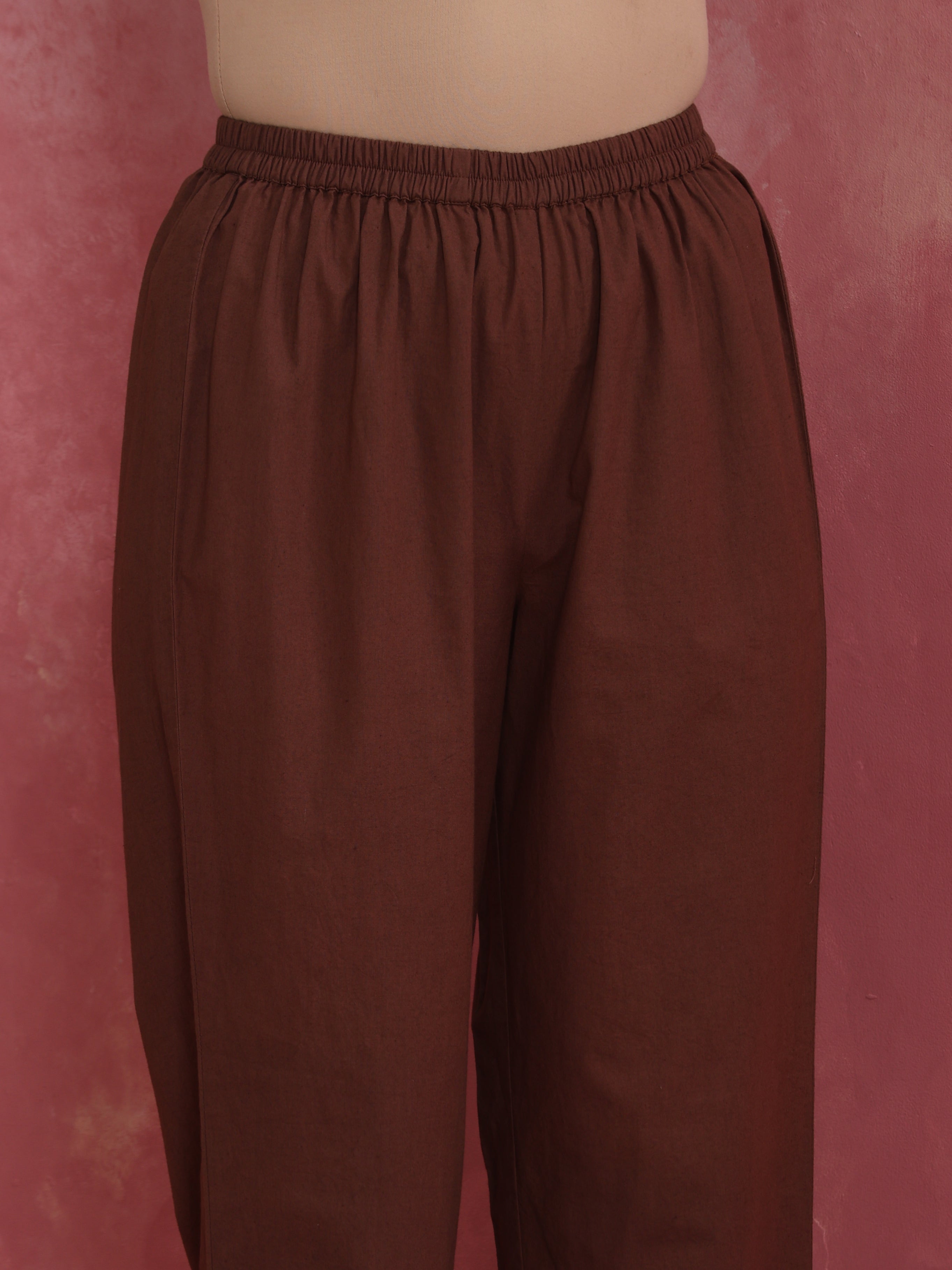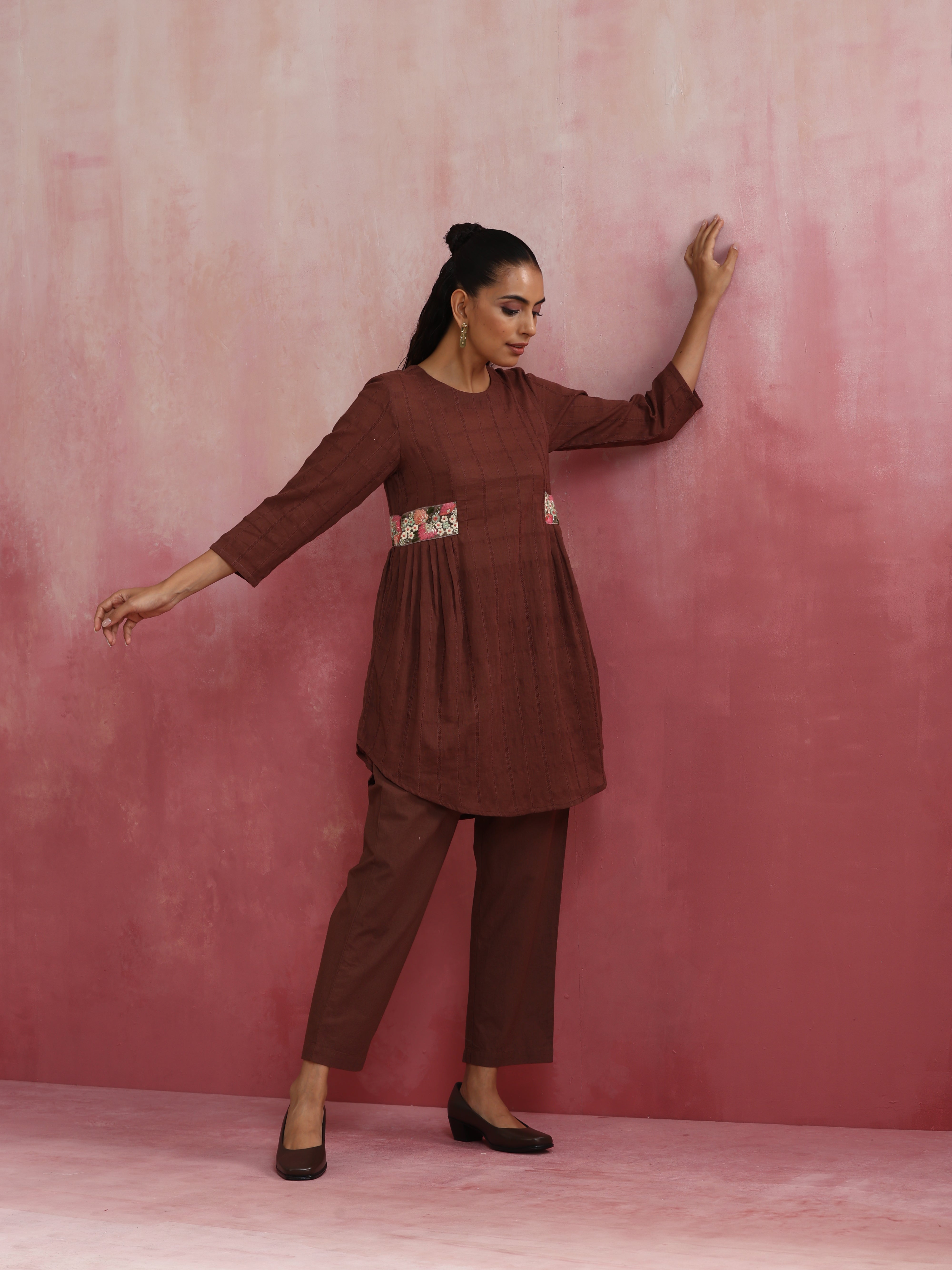 trueBrowns Brown Cotton Dobby Kurta Co-ord set