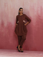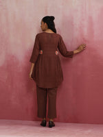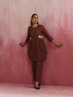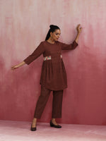 trueBrowns Brown Cotton Dobby Kurta Co-ord set - XS