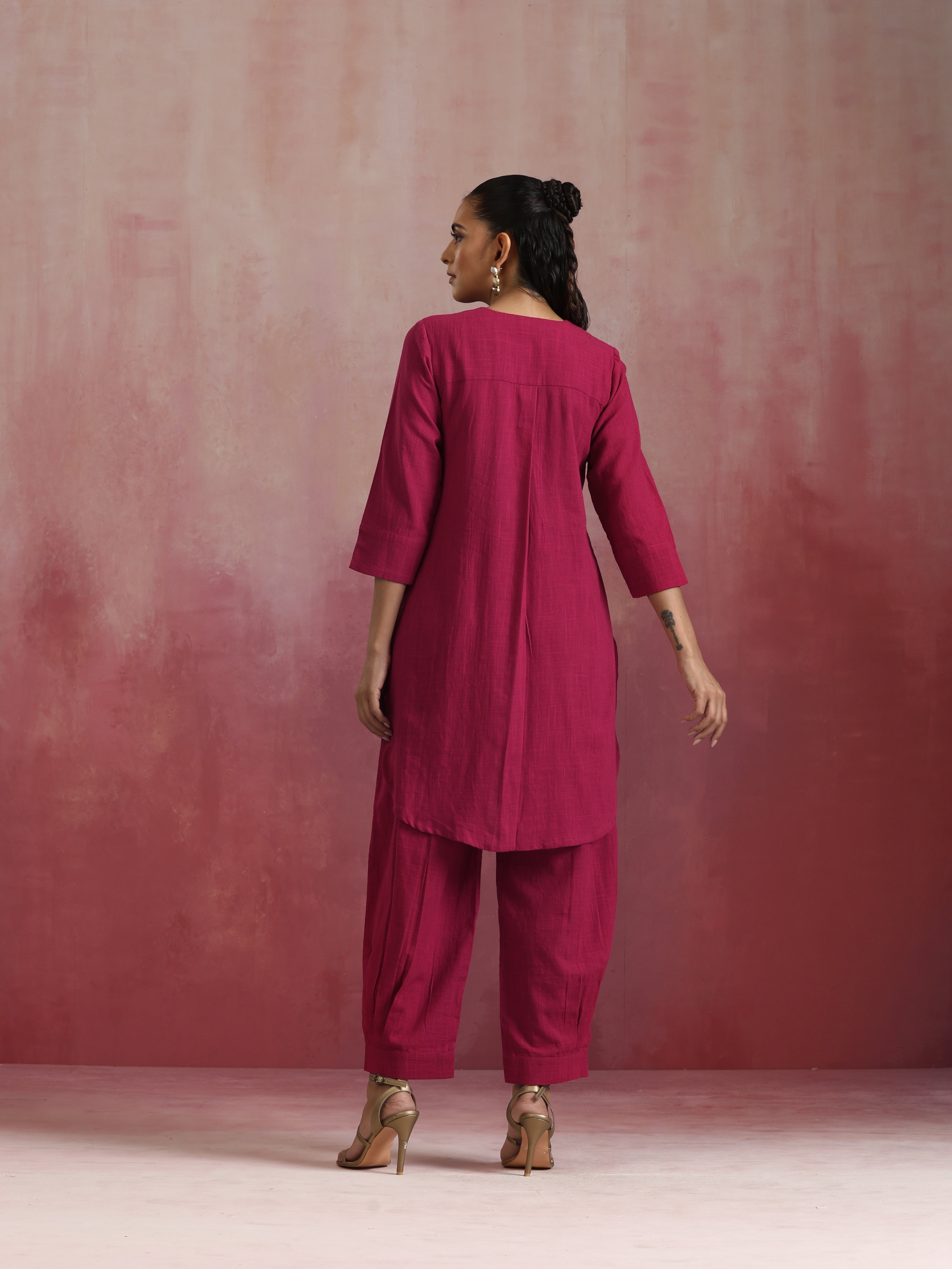 trueBrowns Magenta Cotton Kurta Co-ord set