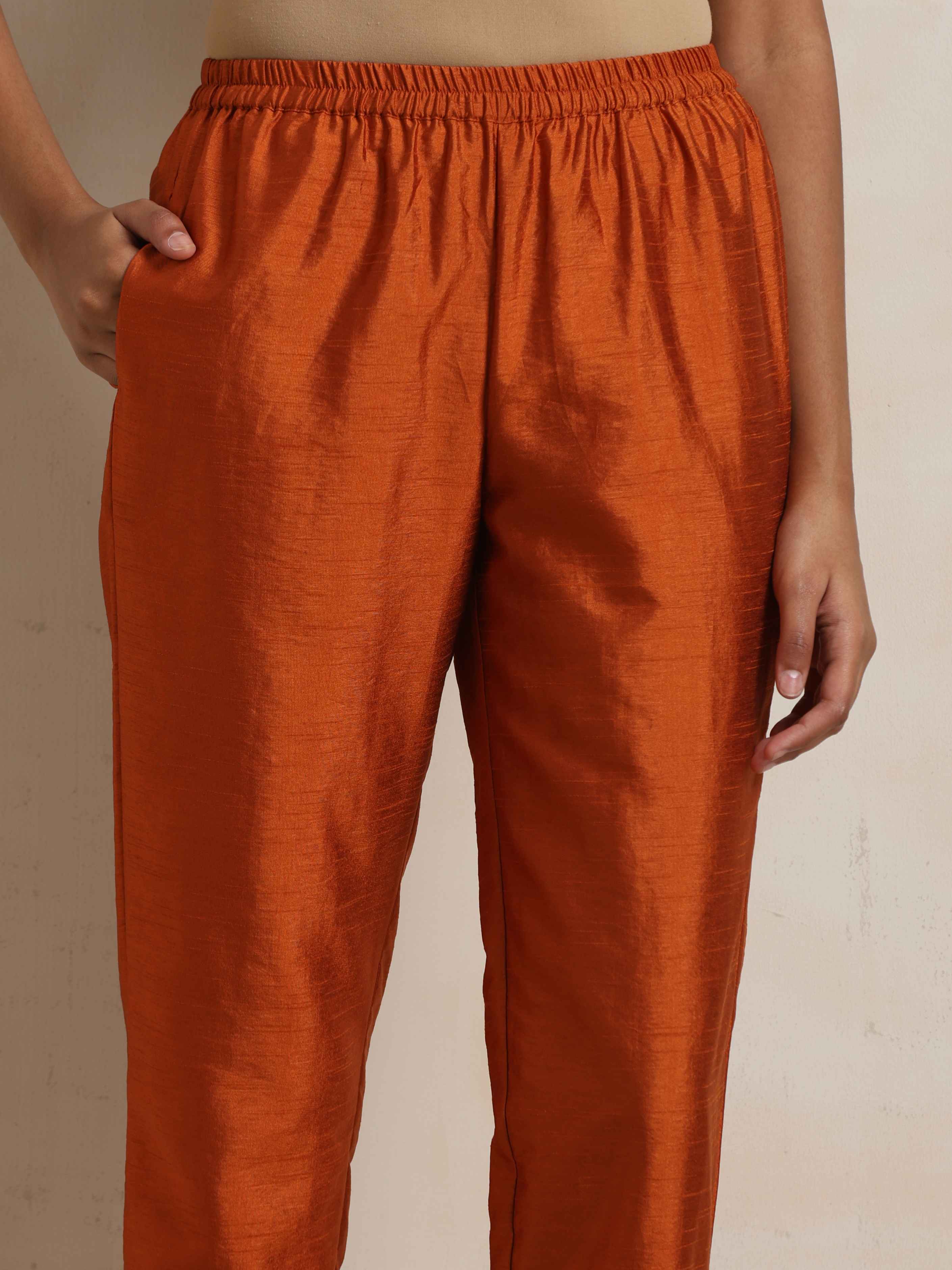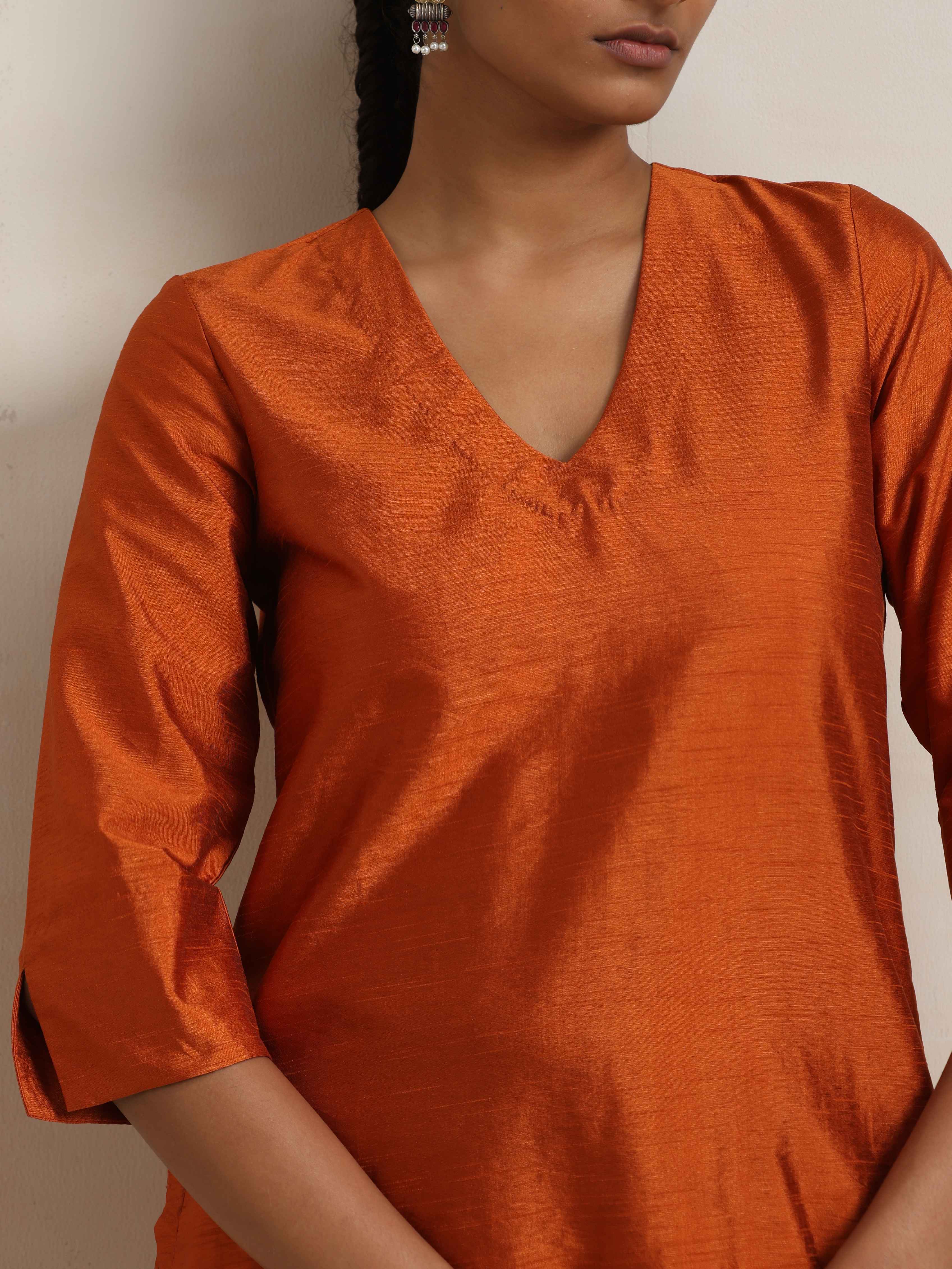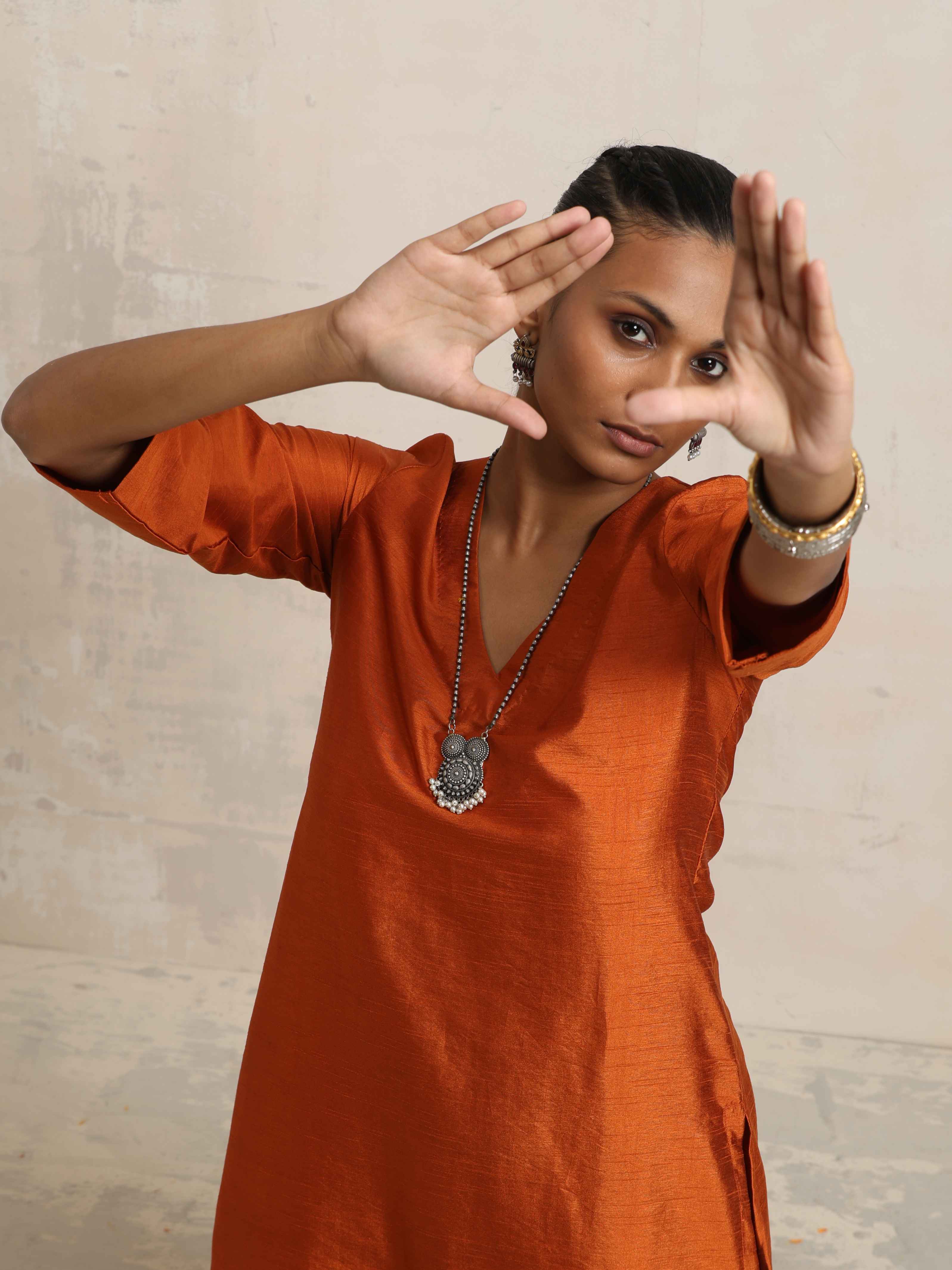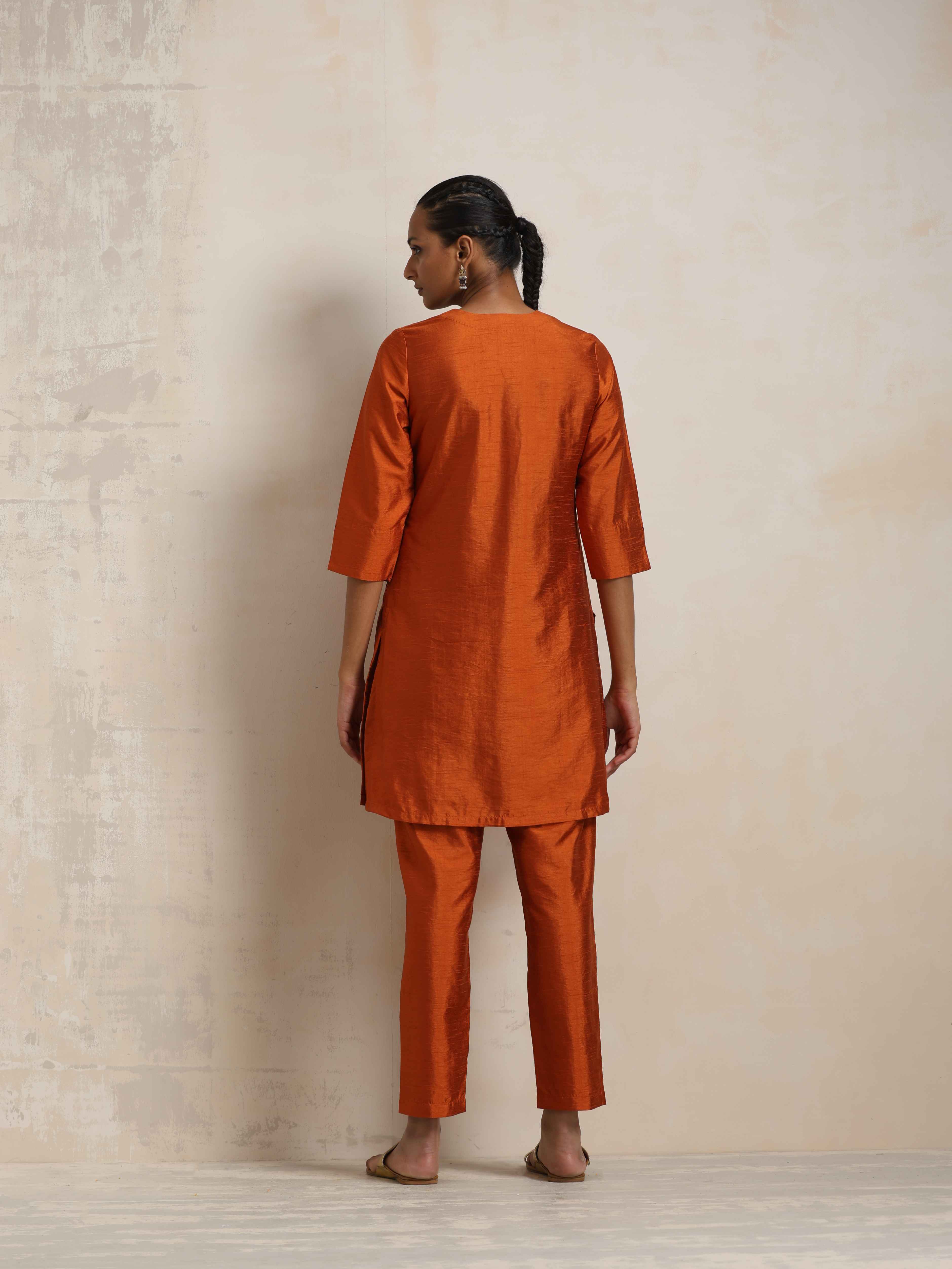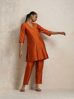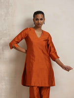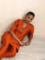trueBrowns Orange Silk Kurta Co-ord Set - 2XS