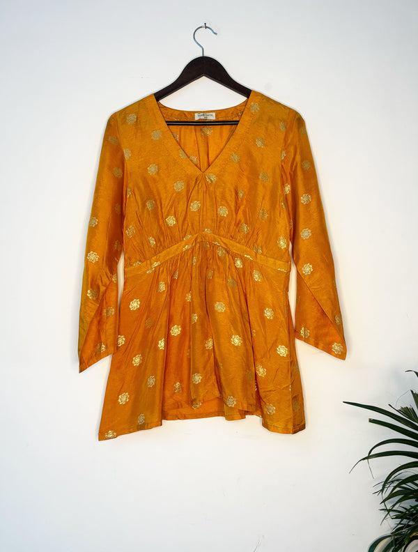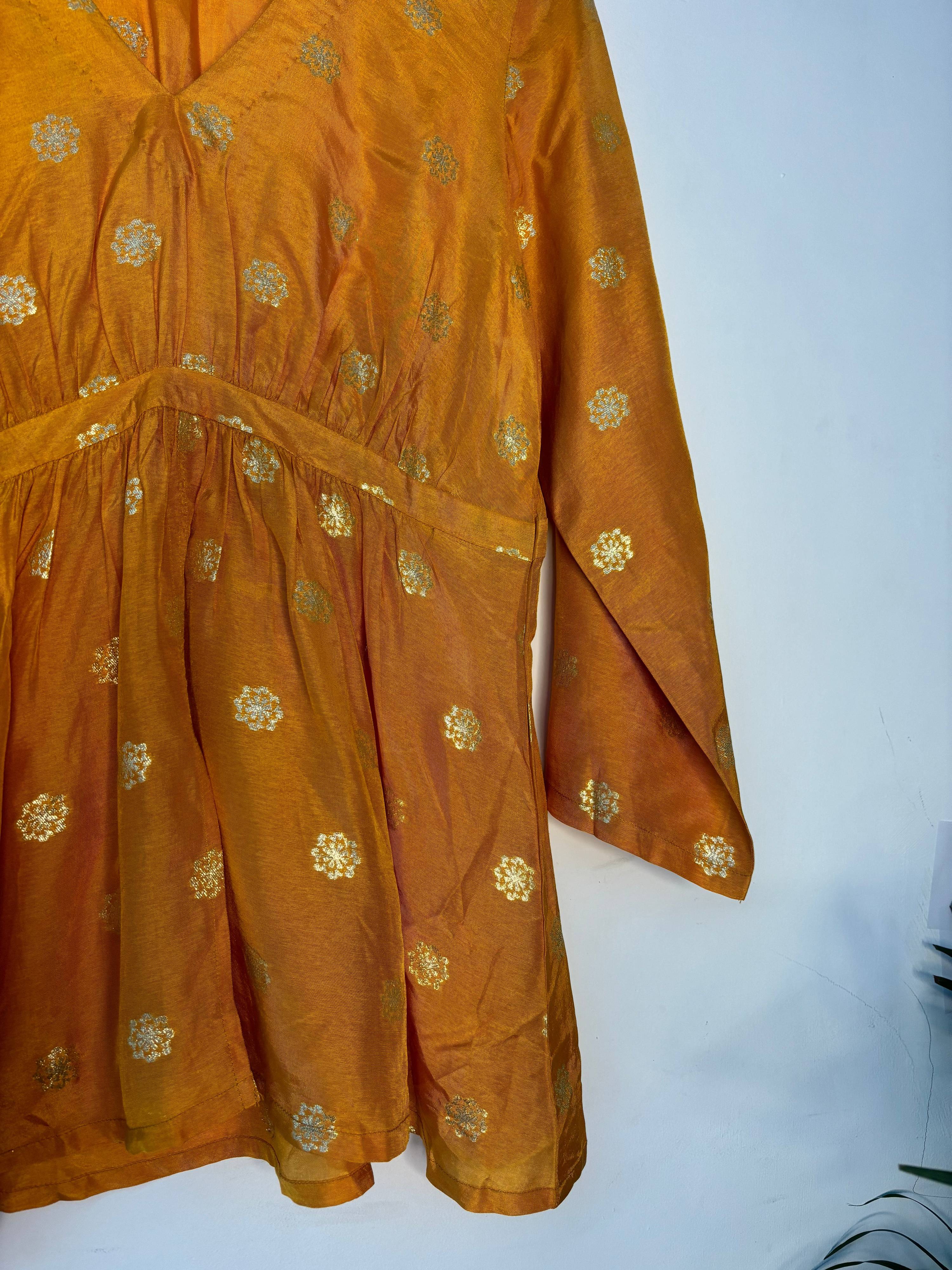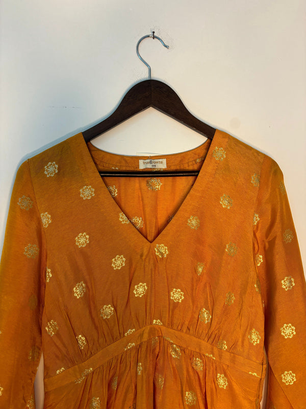 trueBrowns Mustard Zari Embroidered Top - 2XS