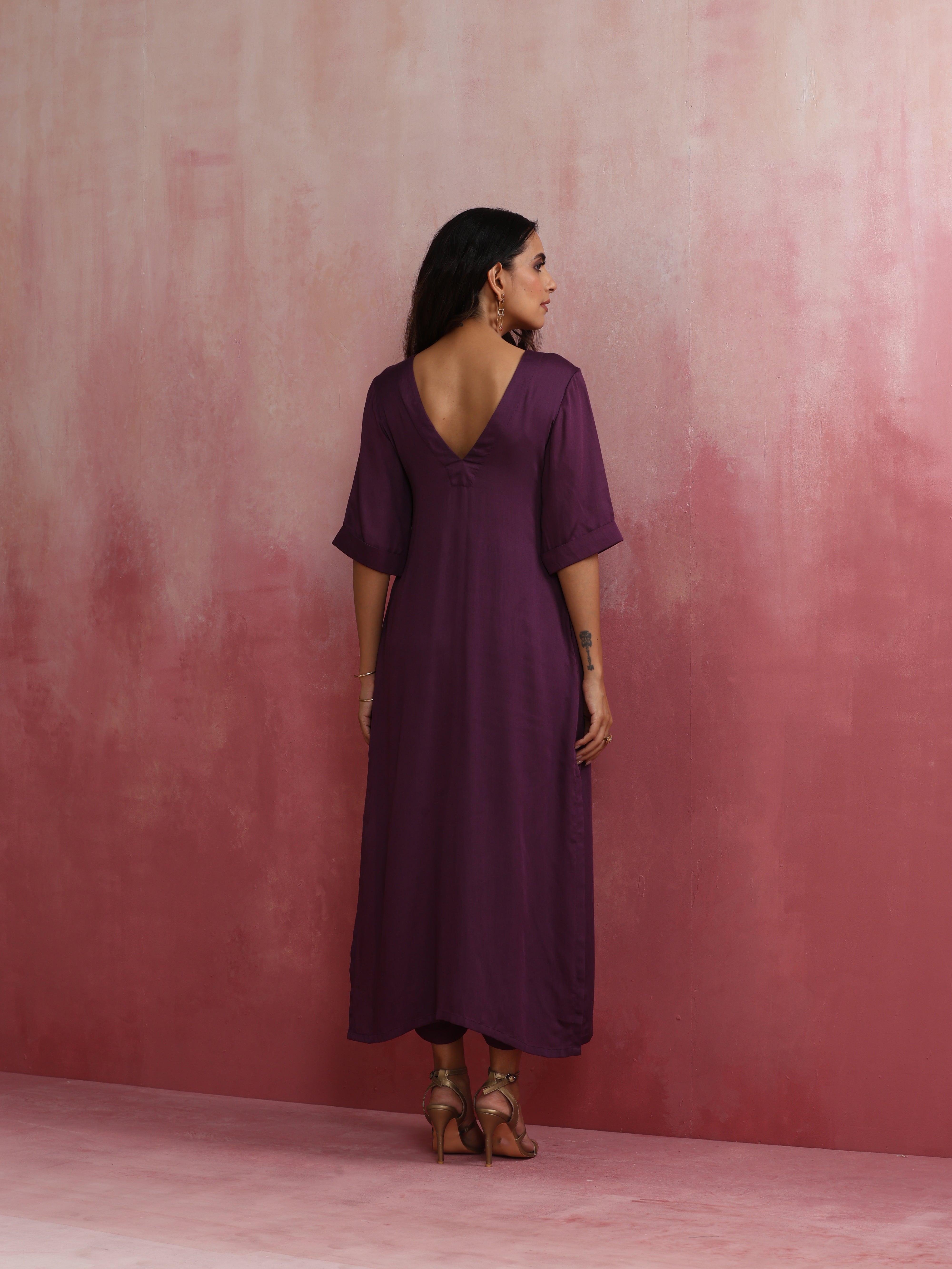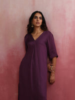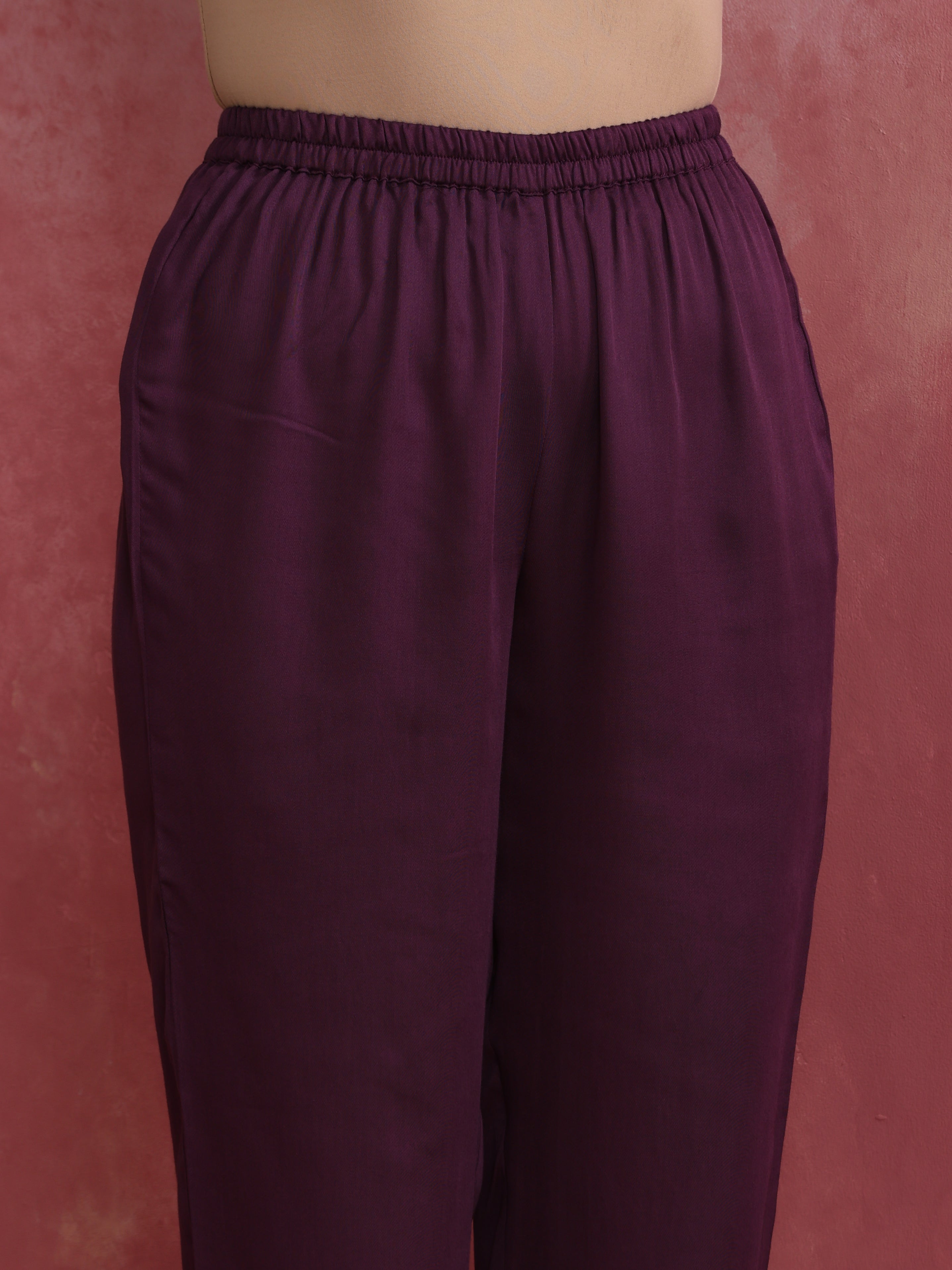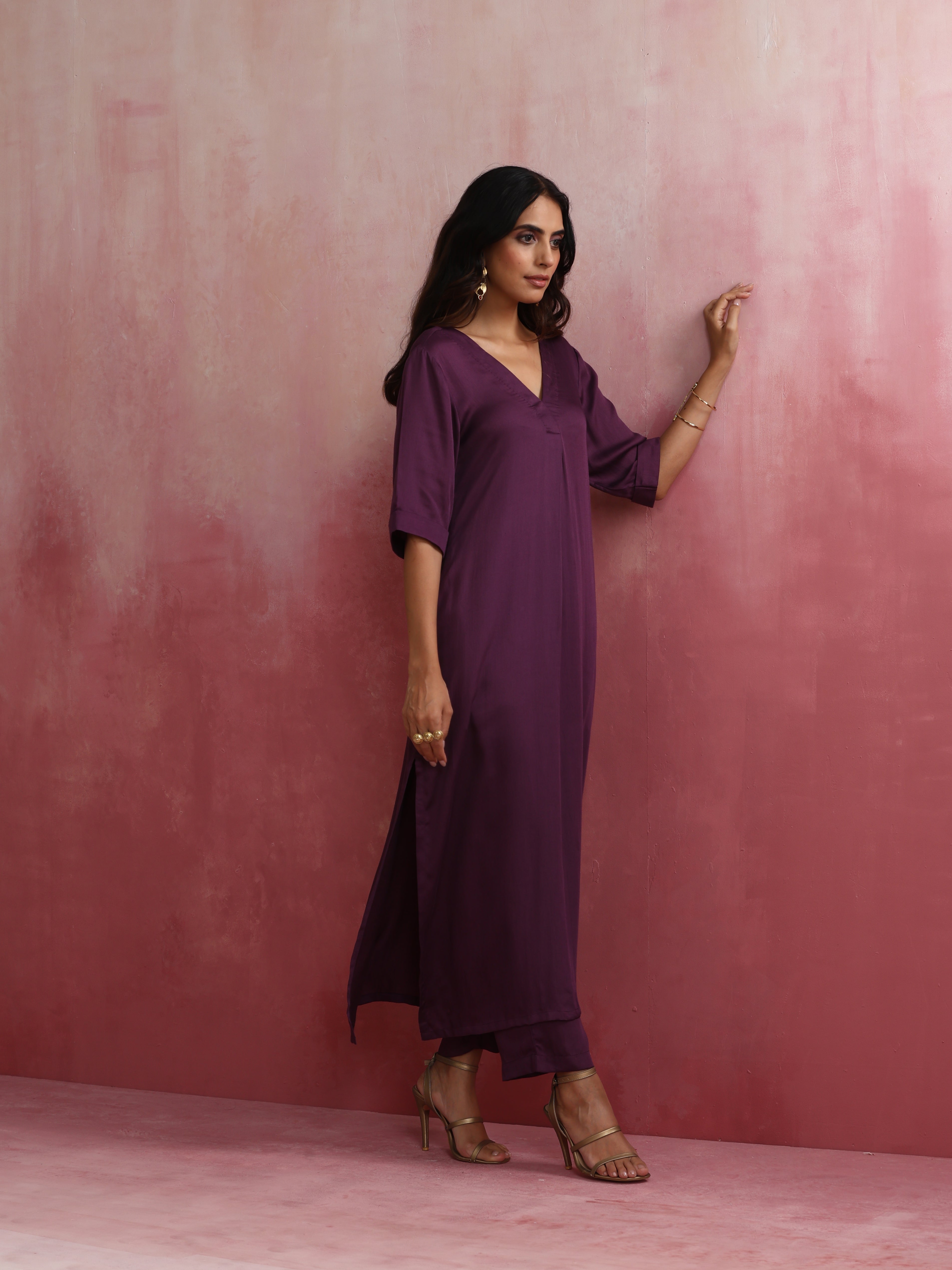 trueBrowns Purple Modal Pleated Kurta SetDescription Elevate your style with this purple modal straight kurta featuring back deep v neckline and el...