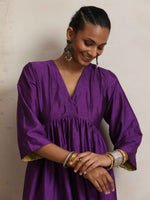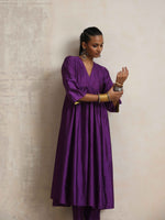 trueBrowns Purple Silk Anarkali Flared Kurta Set - XS