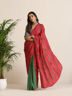 trueBrowns Red Muslin Ikat Saree - Freesize