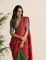 trueBrowns Red Muslin Ikat Saree