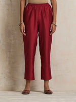 trueBrowns Red Silk Kurta SetDescription Elevate your style with this red silk blend panelled kurta paired perfectly with red silk blend elasticate...