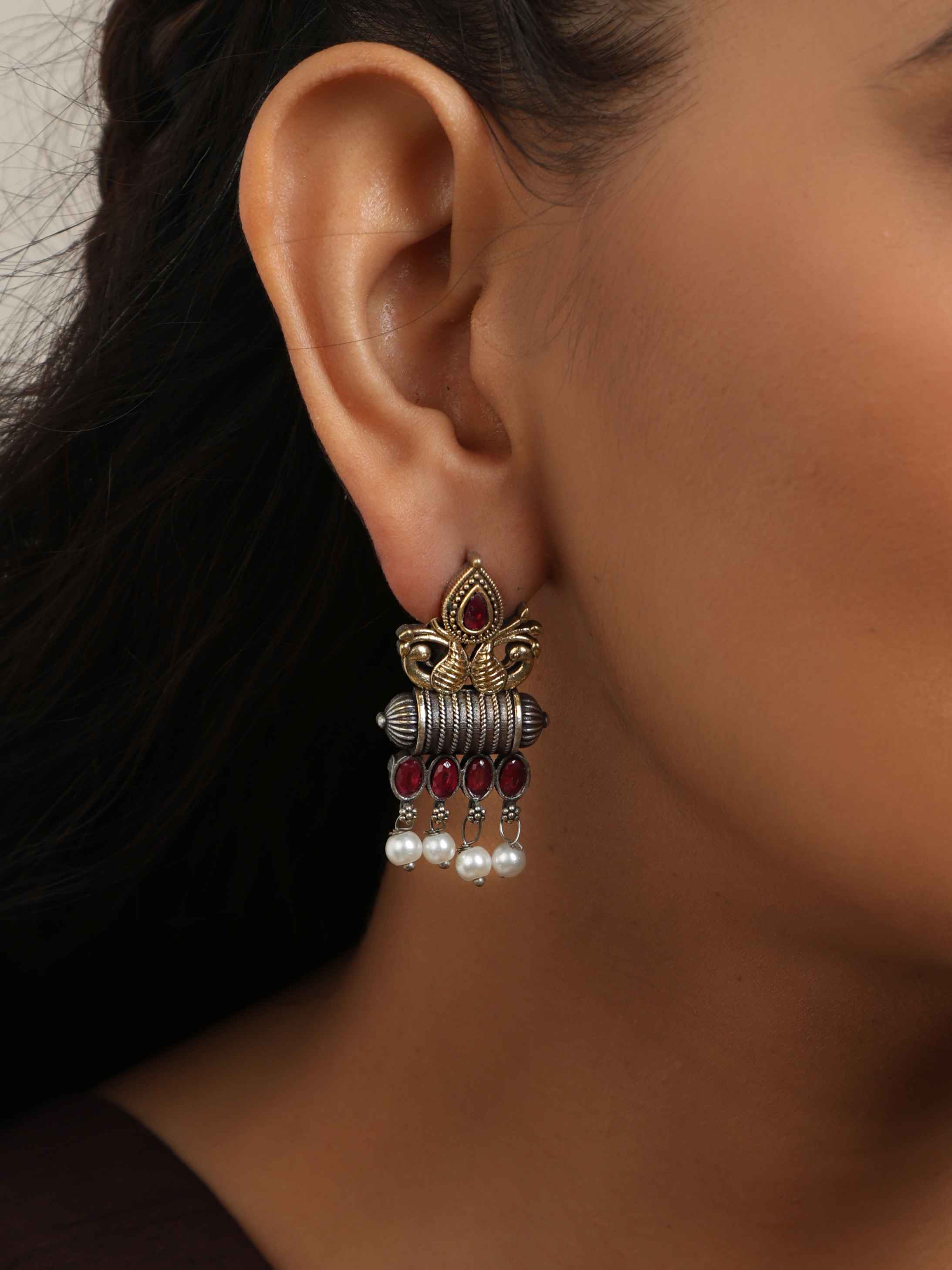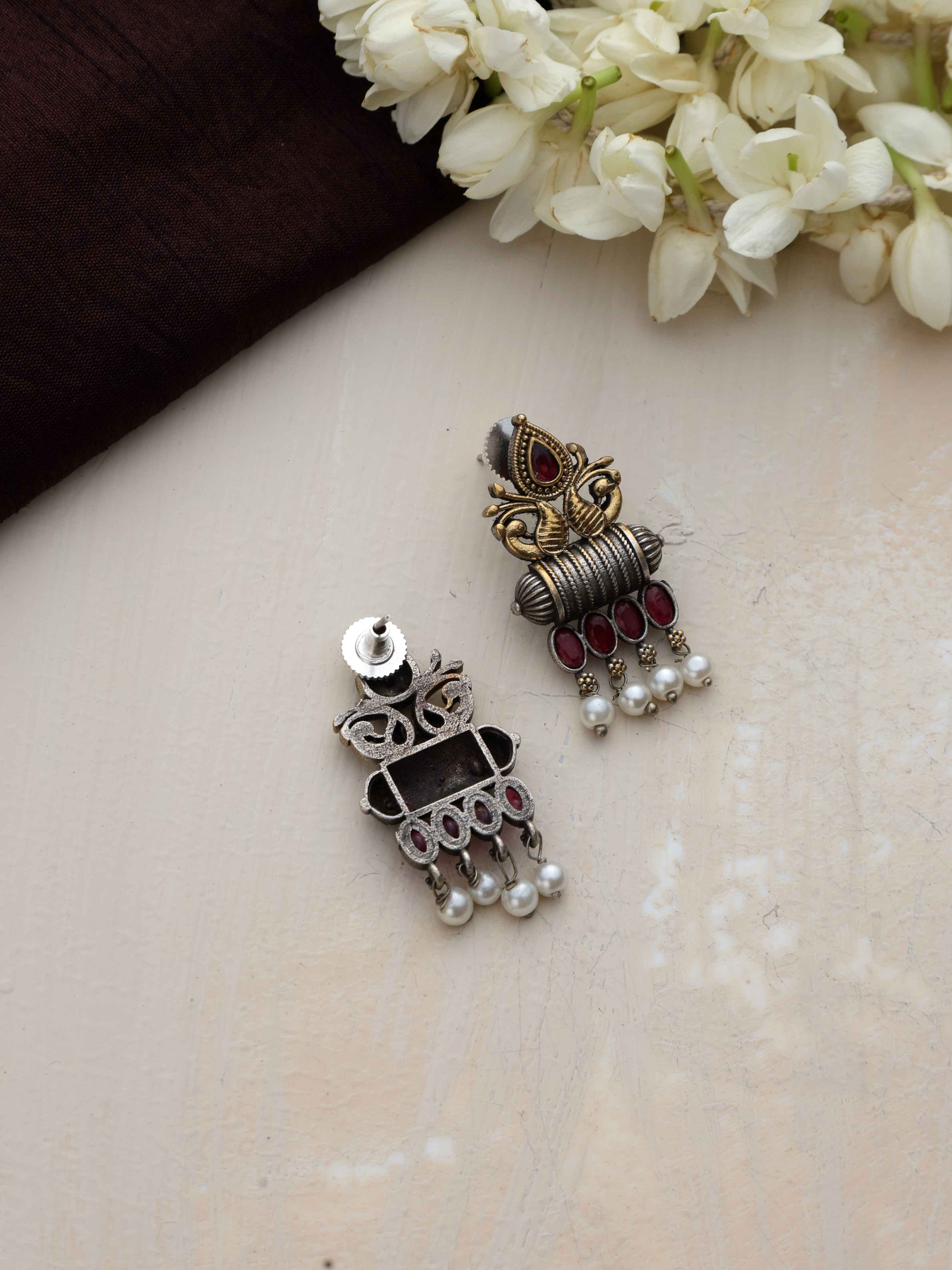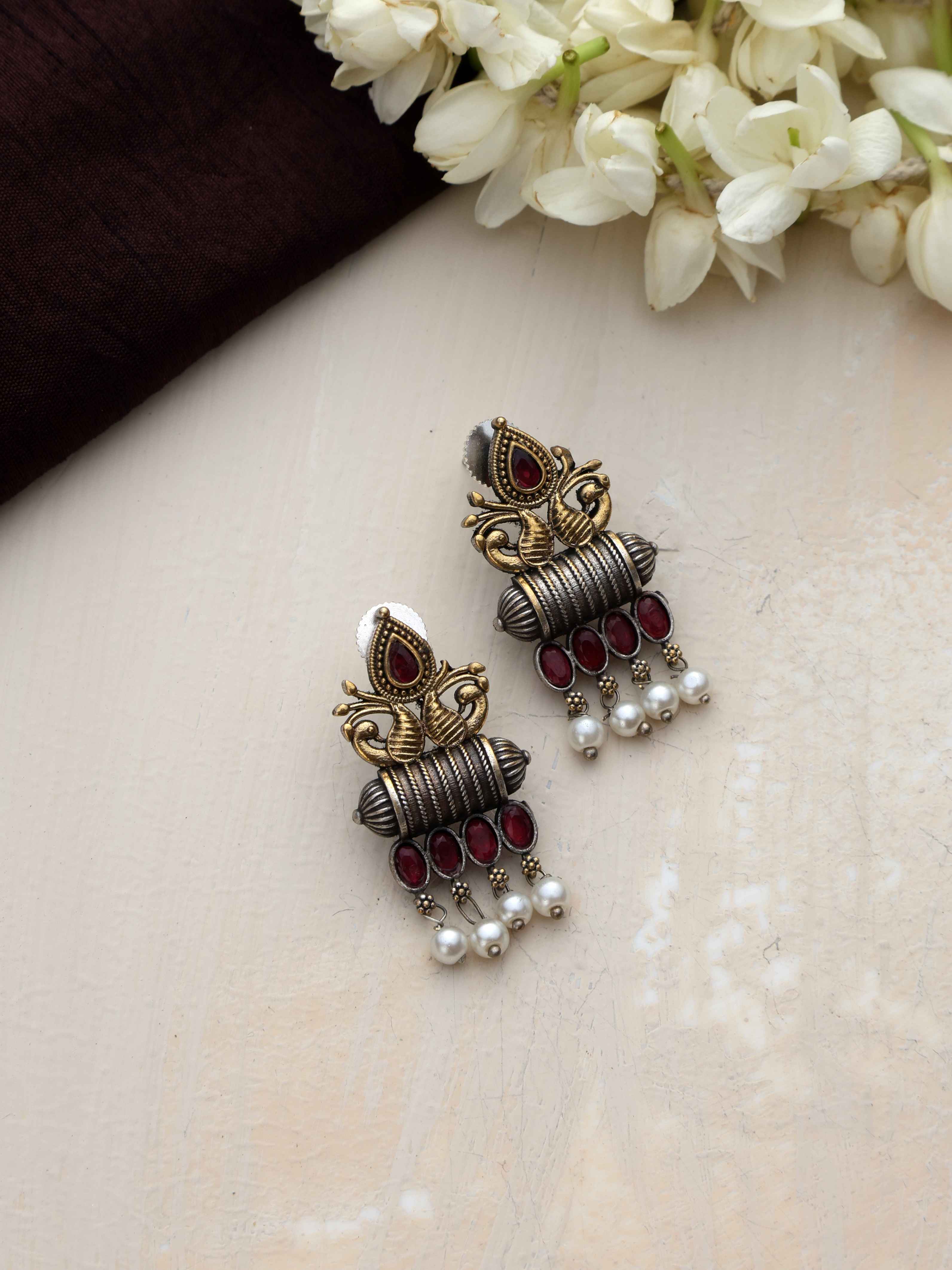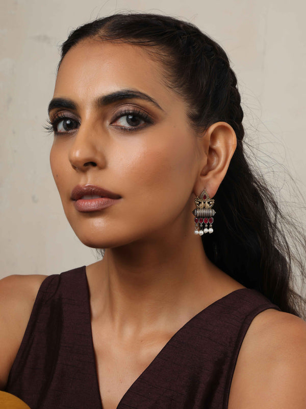trueBrowns Silver Gold Tone Stud EarringsDescription Gold ethnic rectangular stud earring with post and back closure. Style it with a Kurta, Co-or...