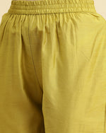 Ikat Printed A-Line Kurta Paired With Contrast Lime Color Trouser And Dupatta, Round Neckline Kurta With Mirror Embroidery Highlighting, 3/4Th Sleeves,Side Slits