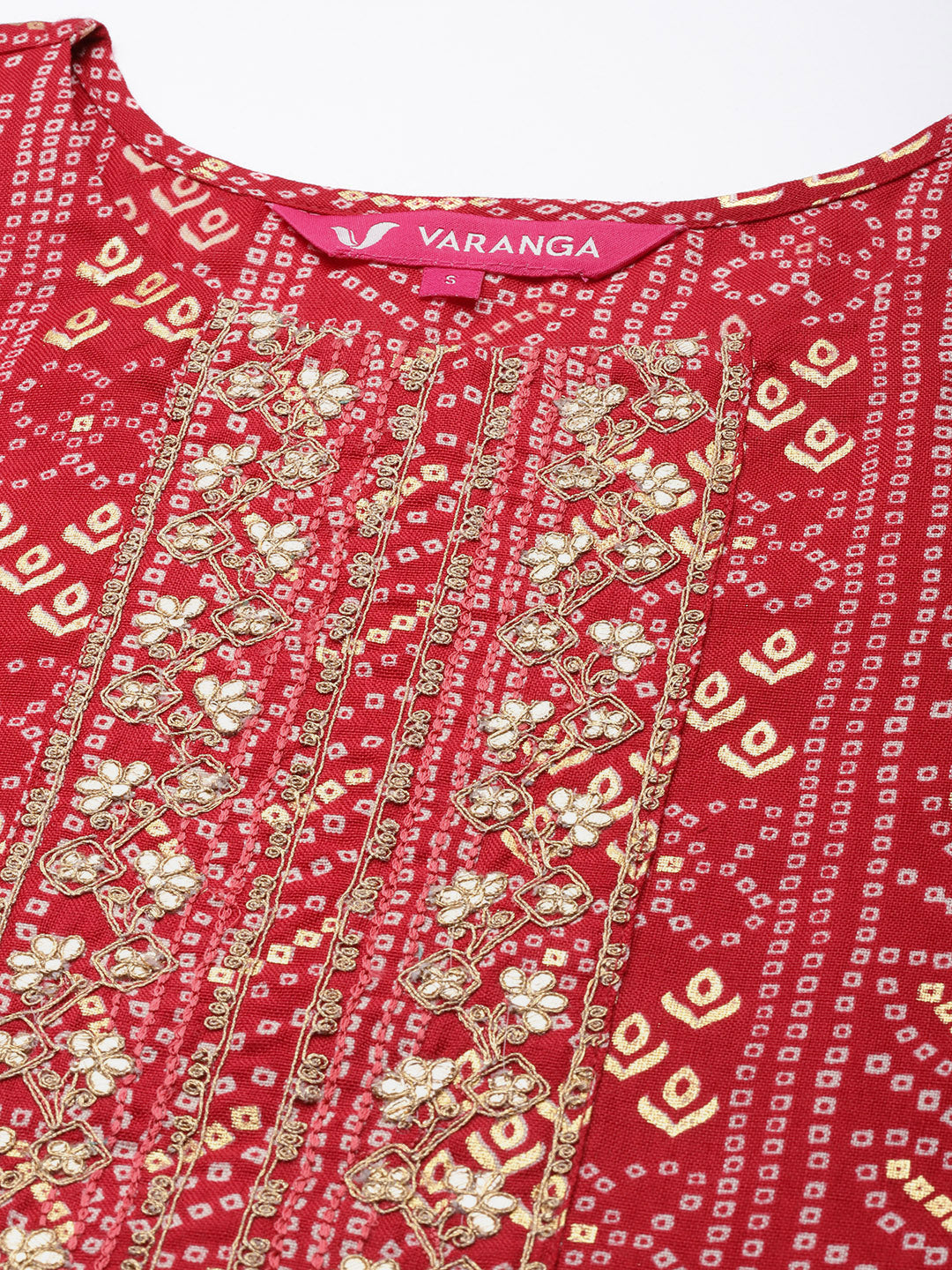 Varanga Women Maroon Gold Printed Embroidered Kurta
