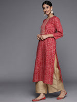 Varanga Women Maroon Gold Printed Embroidered Kurta - S