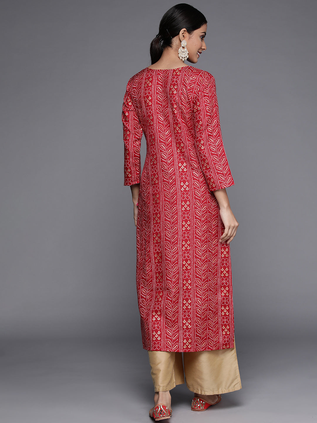 Varanga Women Maroon Gold Printed Embroidered Kurta About the product: Maroon straight kurta with gold print & embroidered yoke, kurta has rou...