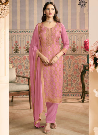 Vegaa Fashion Light Pink Jacquard Silk Hand Work Designer Salwar Suit