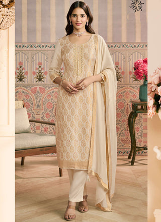 Vegaa Fashion Off White Jacquard Silk Hand Work Designer Salwar Suit