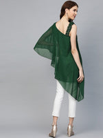 Ahalyaa Women One Shoulder Green Printed Beautiful Tunic - XS