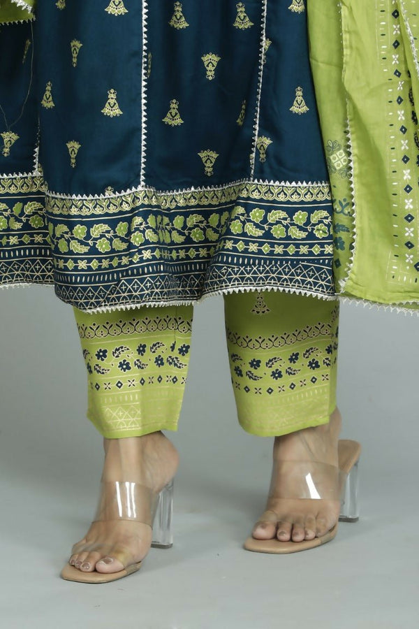Alvano Women's Stylish Anarkali Kurti with Pant and Dupatta for Women and Girls (Teal)