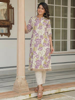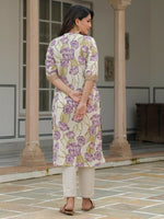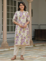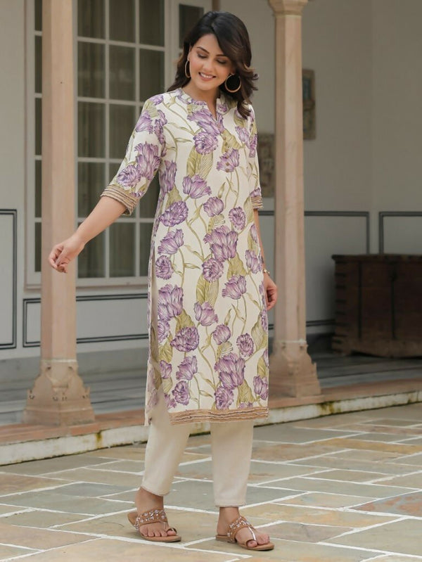 Aramya Straight Linen Cotton Floral Print Women's Kurta - Off White