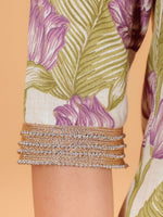 Aramya Straight Linen Cotton Floral Print Women's Kurta - Off White - M